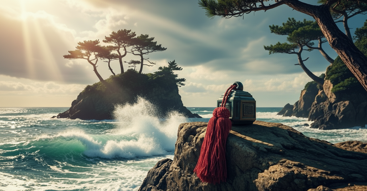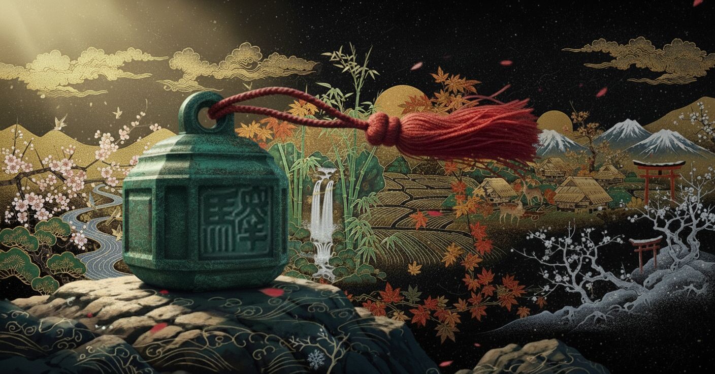 📷 幻想的デジタルアート風 プロンプト(9枚構成) 1. 導入 – 駅鈴の音 Fantasy digital art of a Heian period bronze station bell (ekirei) with an octagonal shape, glowing faintly with greenish verdigris light. It rests on a rock by the rugged Oki Island coastline. Waves crash below, pine trees sway, and rays of sunlight pierce through clouds. Colors: verdigris green, deep blue sea, hints of crimson light \--ar 16:9 2. 都へ馳せる早馬(修正版) Fantasy digital art of a Heian period bronze station bell (ekirei), octagonal shape, small, verdigris surface, glowing faintly with green-blue light, floating above the scene as a sacred symbol. A Heian messenger gallops on horseback through misty mountain roads of Oki Island, carrying a scroll tied with crimson cord. Samurai bow respectfully at a rustic way station illuminated by lanterns. The drifting mist from the left blends in, while a faint crimson glow of sunset appears on the right. Colors: indigo mist, verdigris highlights, golden lantern light, soft crimson horizon. --ar 16:9 --seed 70007 3. 国司の証し Fantasy digital art of a Heian provincial governor in elegant kariginu robes, tying a bronze station bell to his waist with a vivid crimson cord. The bell shines faintly with green-blue light. Behind him stands a wooden government hall, bathed in golden mist. Colors: crimson cord, verdigris bell, warm golden light. \--ar 16:9 4. 出雲街道の駅舎 Fantasy digital art of a rustic wooden way station (umaya) along the Izumo Kaidō. Heian samurai in armor wait with their horses, looking toward the sound of a bell. Lanterns cast a bluish glow, mist drifts among pines. Colors: indigo blue mist, verdigris highlights, faint crimson accents. \--ar 16:9 5. 使命を胸に Fantasy digital art of a Heian warrior caressing the mane of his horse, exchanging a determined gaze. The setting sun glows deep crimson, its rays breaking through clouds like shards of light. Colors: crimson sunset, shadowed armor, soft verdigris gleam on the bell tied at his waist. \--ar 16:9 6. 女の祈り Fantasy digital art of a Heian woman in a simple kosode, standing before a thatched house on Oki Island. She looks up at a star shining brightly in the indigo night sky. A lantern glows warmly at her side. Colors: indigo night, golden lantern, subtle crimson sash, verdigris undertone in the shadows. \--ar 16:9 7. 鈴の歳月 Fantasy digital art of a Heian period bronze station bell (ekirei), octagonal shape, small, verdigris surface, glowing faintly with green-blue light. The bell rests on mossy stone in Oki Island. Around it swirl ghostly visions of the four seasons—cherry blossoms, green grass, crimson autumn leaves, and drifting snow—each dissolving into soft mist that drifts off toward the right edge. Colors: verdigris green, indigo shadows, touches of crimson. --ar 16:9 --seed 70007 8. 結び – 栄光と哀しみ Fantasy digital art of a Heian period bronze station bell (ekirei), octagonal shape, small, verdigris surface, glowing faintly with green-blue light. The bell stands on the cliff edge of Oki Island at sunset. The sea glows with surreal crimson and indigo hues, waves shimmering with mystical light. Mist from the previous scene fades at the left edge, while the glowing crimson sky expands fully to the right. Colors: crimson sunset, indigo sea, verdigris aura. --ar 16:9 --seed 70007--- 9. エピローグ – 鈴の記憶 Fantasy digital art of the station bell floating in a starry indigo sky above Oki Island. Trails of light connect it to the land below, symbolizing countless missions of the past. Colors: deep indigo night, starlight silver, glowing verdigris bell, faint crimson highlights.* \--ar 16:9 ✨ これで9枚すべてが 茜色・群青・緑青 を基調に統一され、幻想的なデジタルアートとして仕上がります。