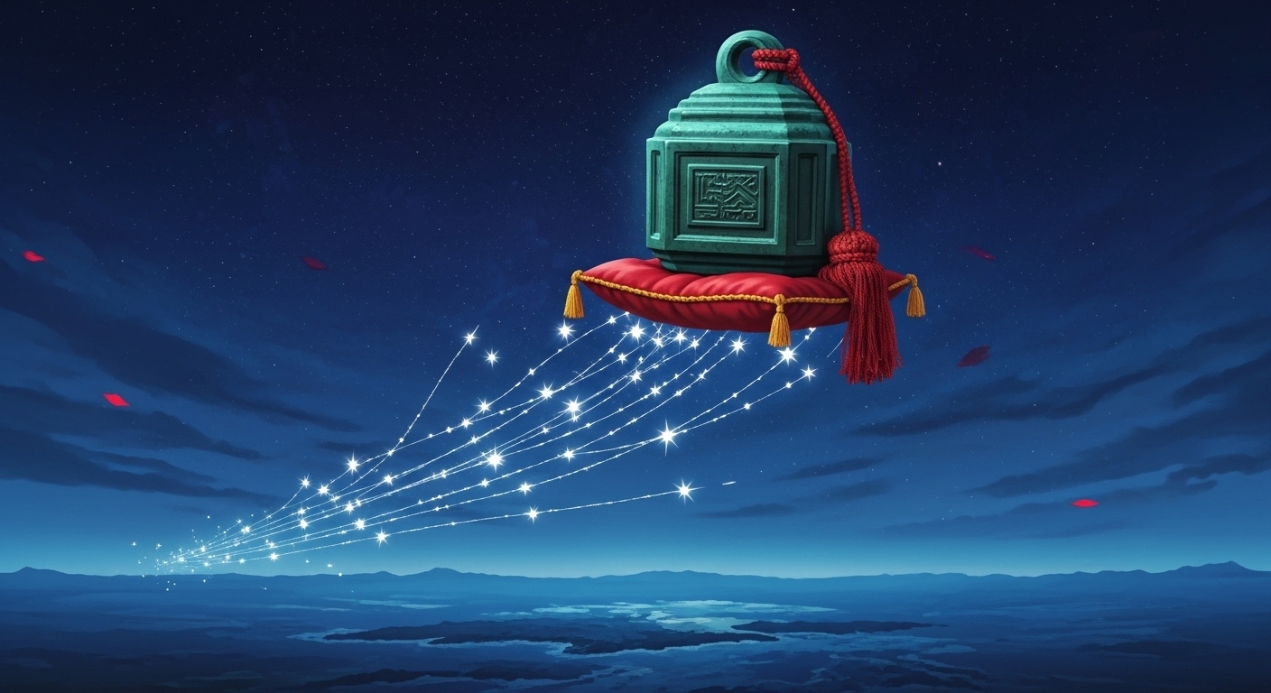 🎨 色彩テーマ * 茜色 (crimson)(夕陽・使命・紐) * 群青 (deep blue)(夜空・海) * 緑青 (verdigris green)(駅鈴の金属の錆び、歴史の重み) この3色を全体の基調として織り込み、統一感を出します。
