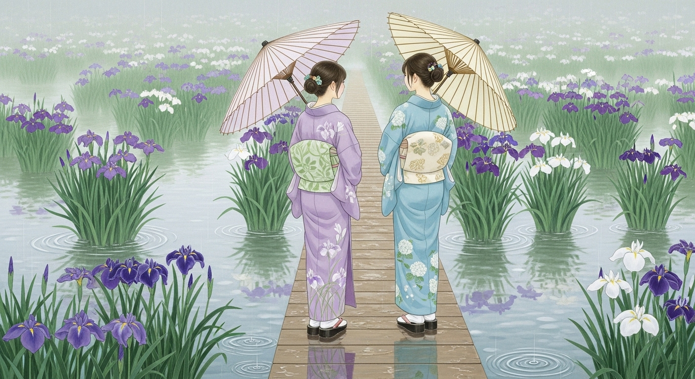 プロンプト② : A refined traditional Japanese Nihonga-style painting on subtly textured washi paper, 繊細な質感のある和紙の上に描かれた、洗練された伝統的な日本画(日本画様式)の絵画で、 rendered in soft, pale, muted mineral pigments with a gentle matte, powdery surface quality, 柔らかく淡く落ち着いた色調の岩絵具を用い、穏やかでマットな粉状の質感を持ち、 applied in translucent layered washes with faint irregular pigment edges, 半透明の重ね塗りによって彩色され、顔料の縁がかすかに不規則ににじむことで、 so that the colors softly bleed into the paper fibers, 色彩がやわらかく紙の繊維に染み込むように表現され、 evoking a serene, poetic atmosphere of early autumn in Japan. 日本の初秋の静かで詩情あふれる雰囲気を醸し出している。 The composition is intimate and close-up, 構図は親密感のあるクローズアップで、 showing two young Japanese women in their early twenties, both with neat short haircuts, 二十代前半のきちんとしたショートヘアの若い日本人女性二人を描き、 depicted from a viewpoint that is close enough so their full standing figures fill most of the frame, 立ち姿の全身がほぼ画面いっぱいに収まるほど近い視点から描かれ、 with only a glimpse of the garden and soft autumn sky behind them. 背景には庭園と柔らかな秋の空がわずかにのぞく程度に留められている。 Both women wear simple yet graceful summer one-piece dresses in a soft off-white fabric lightly patterned with faint pale-green botanical motifs, 二人の女性は、淡い黄みを帯びた白の柔らかな生地に、かすかな薄緑色の植物模様が入った、シンプルながらも上品な夏のワンピースを身に着け、 paired with modest straw hats with soft rounded brims, 控えめで柔らかい丸みを帯びたつばの麦わら帽子を合わせ、 conveying a gentle seasonal charm. 穏やかな季節感のある魅力を漂わせている。 They stand close together, their heads slightly inclined and their eyes gently lowered toward the few large pale-pink cosmos flowers blooming nearby, 二人は寄り添うように立ち、頭をわずかに傾けて、近くに咲く数輪の淡い桃色のコスモスの花に目をやり、 as if quietly admiring the fragile beauty of the blossoms. まるでそのはかなげな美しさを静かに愛でているかのようである。 In the foreground, a few large pale-pink cosmos flowers bloom on slender stems beside the women, 前景には、二人のそばにほっそりとした茎を伸ばした淡い桃色のコスモスの花がいくつか咲き、 their petals depicted with delicate tonal transitions, soft irregular edges, and faint bleeding into the paper fibers, 花びらは繊細な色調の変化とやわらかな不規則な縁取り、そして紙の繊維にかすかに滲むような描写で表され、 suggesting their ephemeral, tender quality. その儚くやさしい質感を感じさせている。 The cosmos petals and leaves show slight visible wavering and gentle unevenness in tonal density, コスモスの花びらや葉にはわずかに揺らぎや色の濃淡の優しいむらが見られ、 suggesting the organic rhythm of a real brush and the texture of traditional mineral pigments. 実際の筆づかいと伝統的な岩絵具の質感がもつ自然なリズムを想起させる。 The background remains minimal and understated, 背景は最小限で控えめにとどめられ、 with perhaps a faint hint of distant pale grasses and soft light in the sky, 遠くに淡い草むらや柔らかな空の光がほのかに示される程度で、 leaving ample open space to emphasize the two women and the nearby cosmos. 広い余白を残し、二人の女性と近くのコスモスを際立たせている。 The overall composition is balanced and harmonious, 全体の構図は均整が取れて調和があり、 with a sense of slightly flattened decorative spatial depth and generous open space, やや平面的で装飾的な空間の奥行きと広い余白の感覚を持ち、 avoiding strong Western perspective and preserving the quiet elegance of Nihonga. 強い西洋的遠近法を避け、日本画特有の静かな優美さを保っている。 No bold contour lines, no comic-style ink outlines, no sharp anime-style shading. 太い輪郭線も、漫画調の墨線も、鋭いアニメ調の陰影もなく、 All forms are defined by soft tonal transitions and delicate variations of color, すべての形は柔らかな色調の変化と繊細な色彩のニュアンスによって描き出され、 with the washi-paper texture faintly visible beneath the pigments, 顔料の下にわずかに和紙の質感が見え隠れし、 enhancing the impression of a genuine Nihonga painting on washi. 和紙に描かれた本物の日本画の印象をいっそう引き立てている。 16:9 aspect ratio, high-resolution Nihonga-style texture. 16:9のアスペクト比、高解像度の日本画調の質感。
