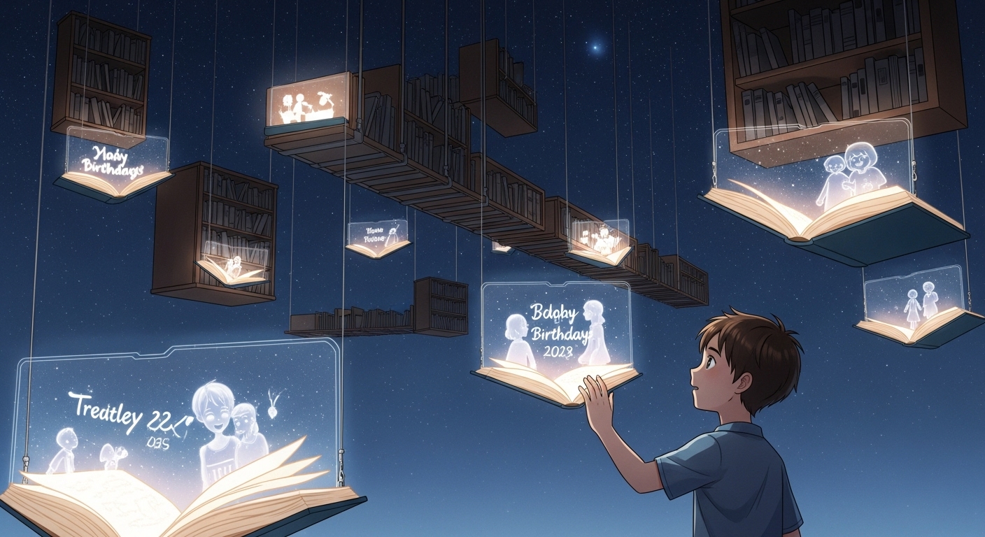 5. 【浮遊する記憶の本棚】夢と現実の間に、本が浮かんでいた。幼き私の涙も笑いも、全て綴られていた。