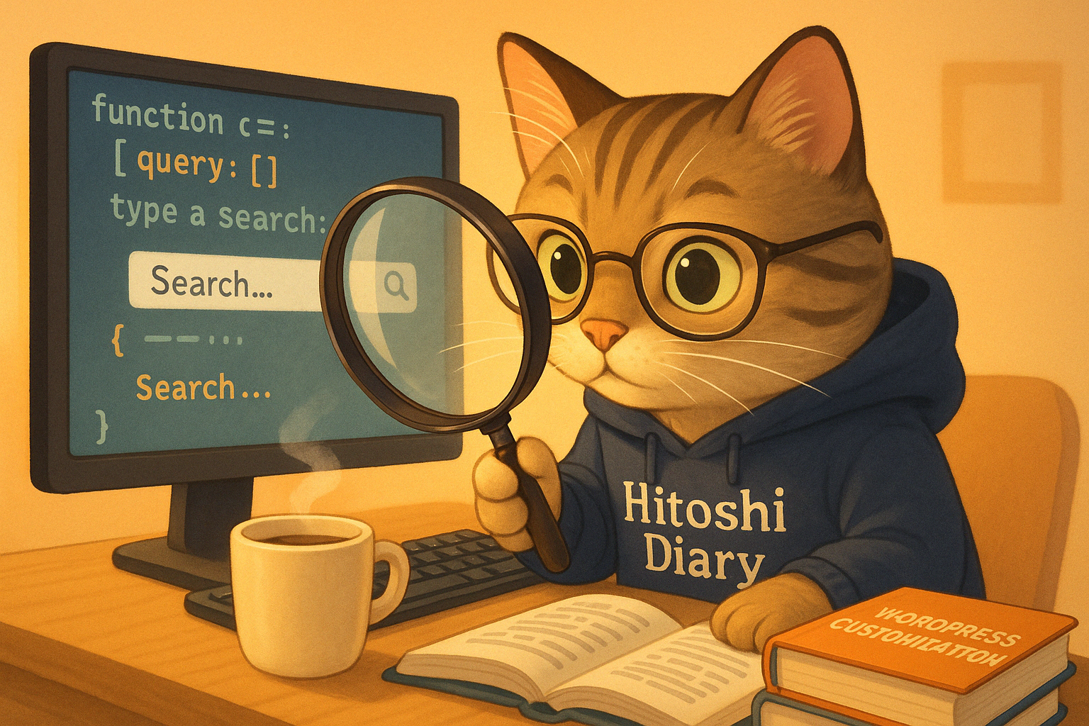 なぜ fetch と検索がうまく「同期」されているのか? ポイント1:.then() の中でイベント登録しているから fetch() は非同期ですが、.then(data => {...}) の中は「データの取得が完了した後に実行される処理」です。 つまり searchData に正しいデータが代入された後に、検索のイベント処理が設定されるようになっています。 👉 これにより「検索しようとしたのにデータがまだ無い」という状況を自動的に回避しています。 ポイント2:ユーザーが何かを入力するのは常に「後」 ユーザーが入力を始めるのは通常、ページ読み込み → データ取得 → イベント登録 の後。 もし非常に高速でユーザーが先に入力したとしても、入力イベントはまだ addEventListener されていないため、反応しません(安全)。 🔄 もう少しイメージしやすく 処理ステップ 内容 説明 1 fetch() 開始 データ取得開始(非同期) 2 .then() 内部 データ取得成功時に実行 3 searchData = data ここでグローバル変数に保存 4 .addEventListener() ユーザー入力に反応する検索処理を登録 5 ユーザーが検索語を入力 searchData はすでに取得済み ✅ 注意:fetch の完了前に検索イベントが発動しない理由 イベント登録(検索処理)は fetch(...).then(...) の 中 に書かれているため、fetch が終わっていない限り、検索処理自体が存在しないのです。 なので、明示的な同期処理を書かなくても自然と順番が保証されているという仕組みになっています。 🛡️ さらに安全にするなら? 例えば、イベント登録を最初にしてしまった場合は「データが未読み込みで検索エラー」になる恐れがあります。 その場合は防御コードを入れられます: if (!searchData || searchData.length === 0) { return; // データがまだ読み込まれていない場合は何もしない }