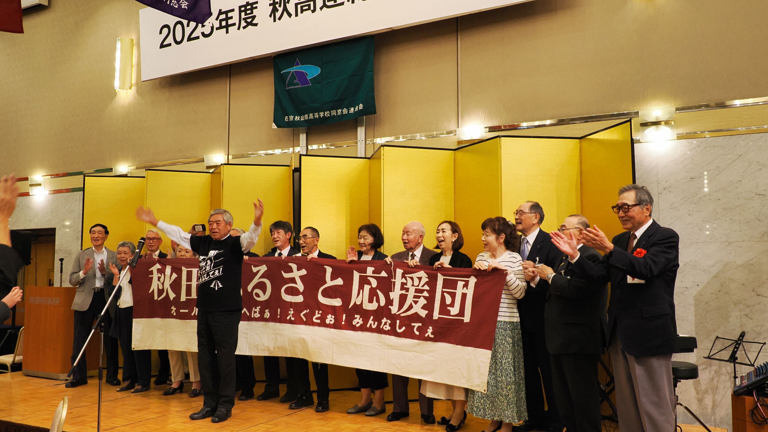 恒例の秋田ふるさと応援団の参加者が登壇し、大渕清一応援団長のリードで全員が秋田へのエールを送りお開きとなった。