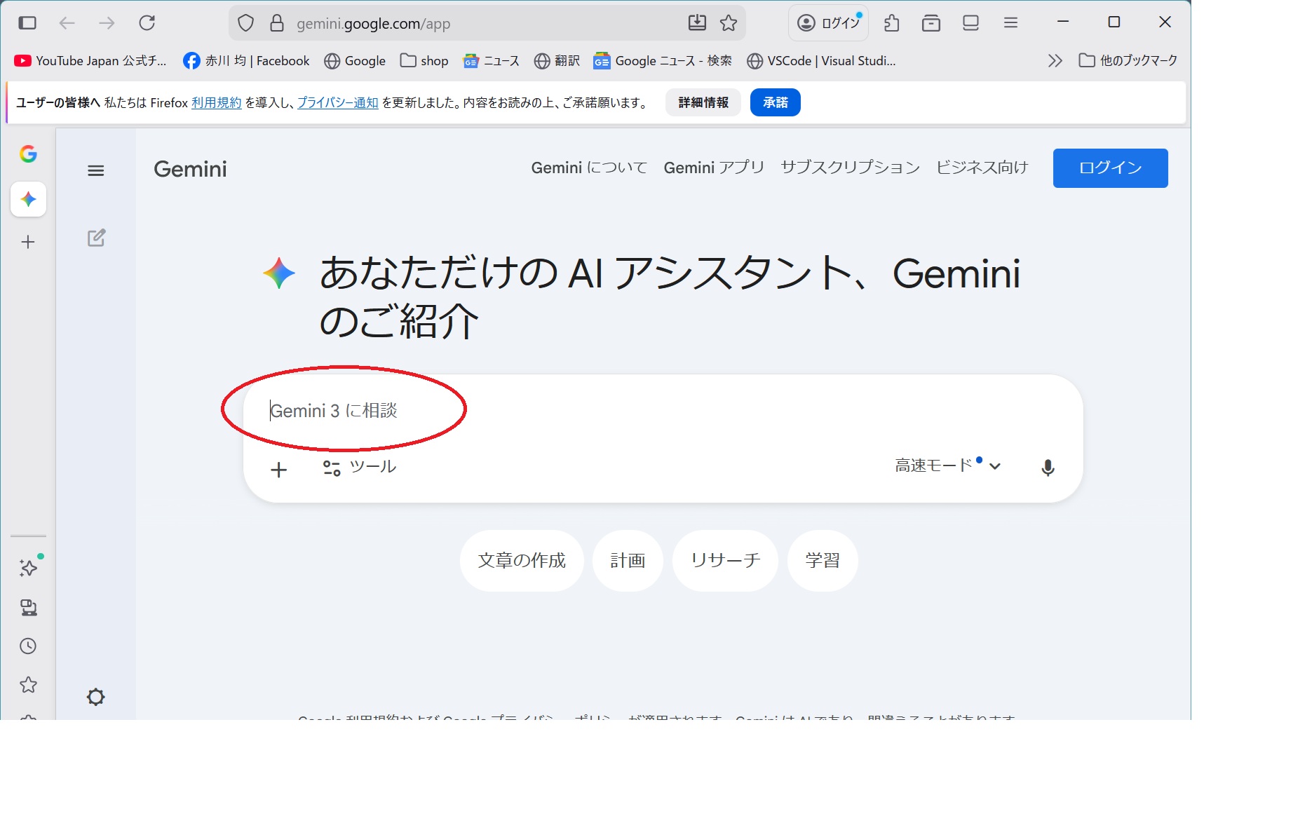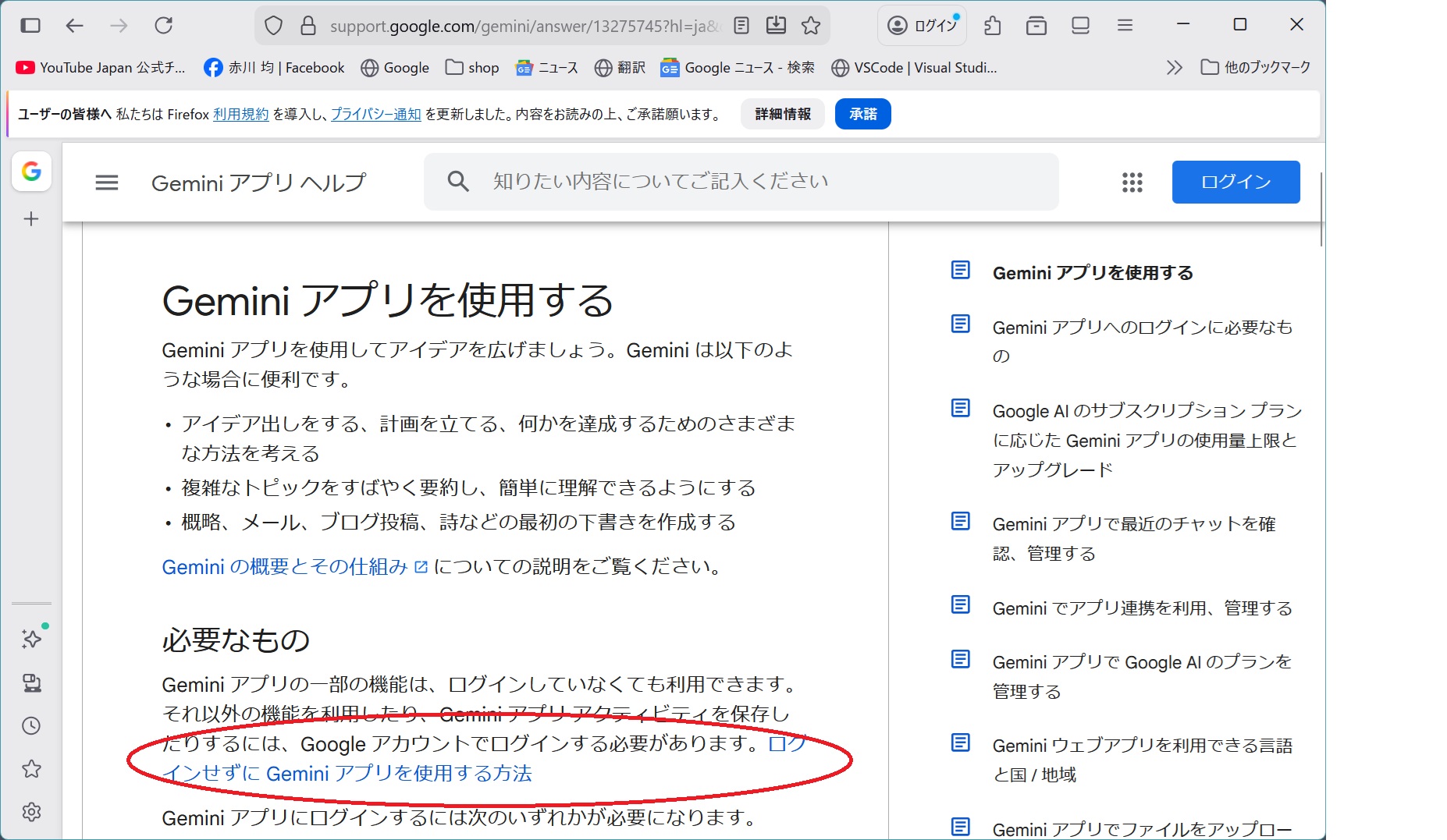 ログインせずにGeminiアプリを使用する方法 をクリック