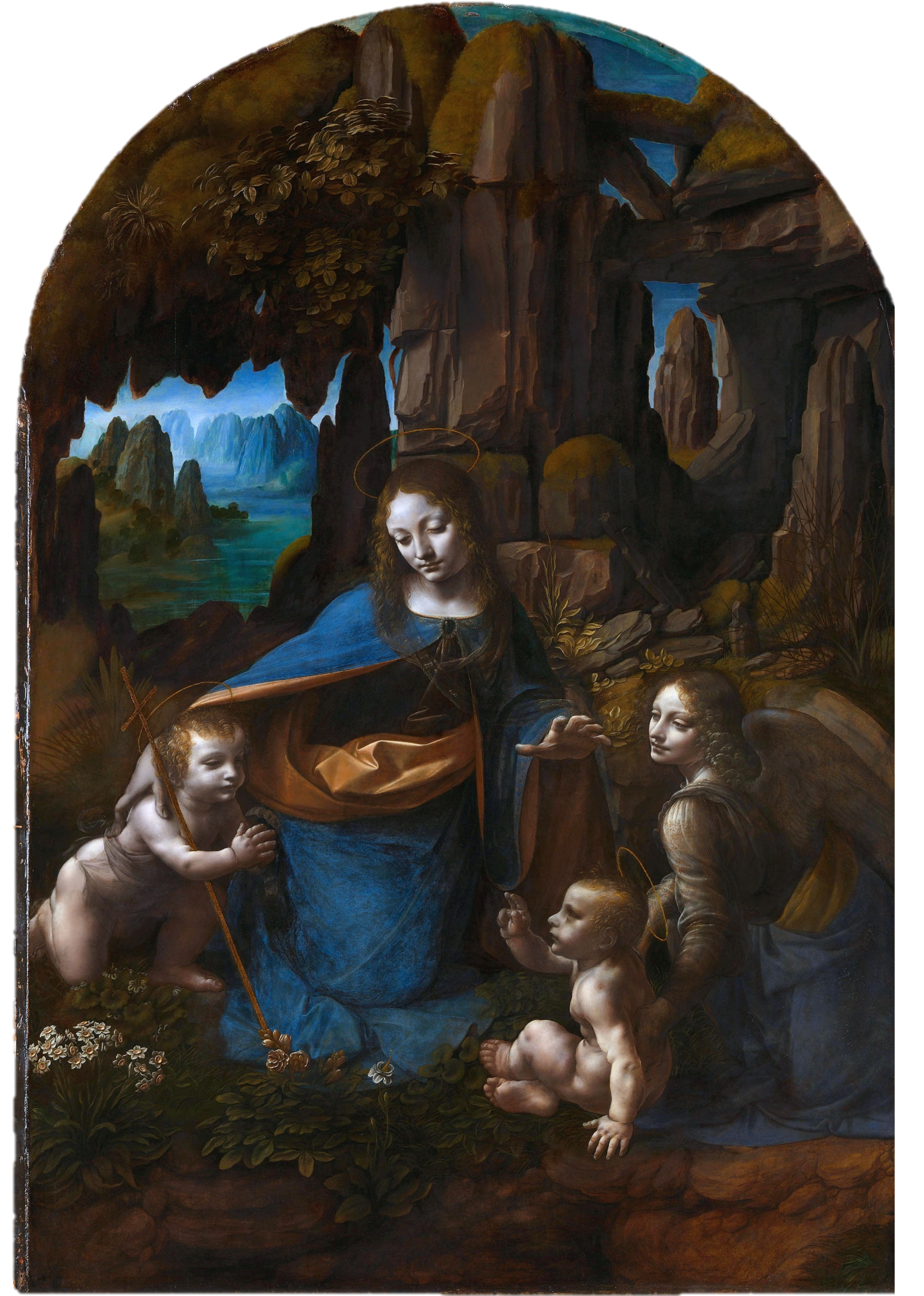 レオナルド・ダ・ヴィンチ(1452 - 1519) が描いた『岩窟の聖母』は、パリ・ルーヴル美術館蔵(第一バージョン)と、ロンドン・ナショナル・ギャラリー蔵(第二バージョン)の2つの絵が存在する。描かれているのは聖母マリア、幼子イエス、幼子ヨハネ、そして天使(一般的にはウリエルとされる)の4名である。