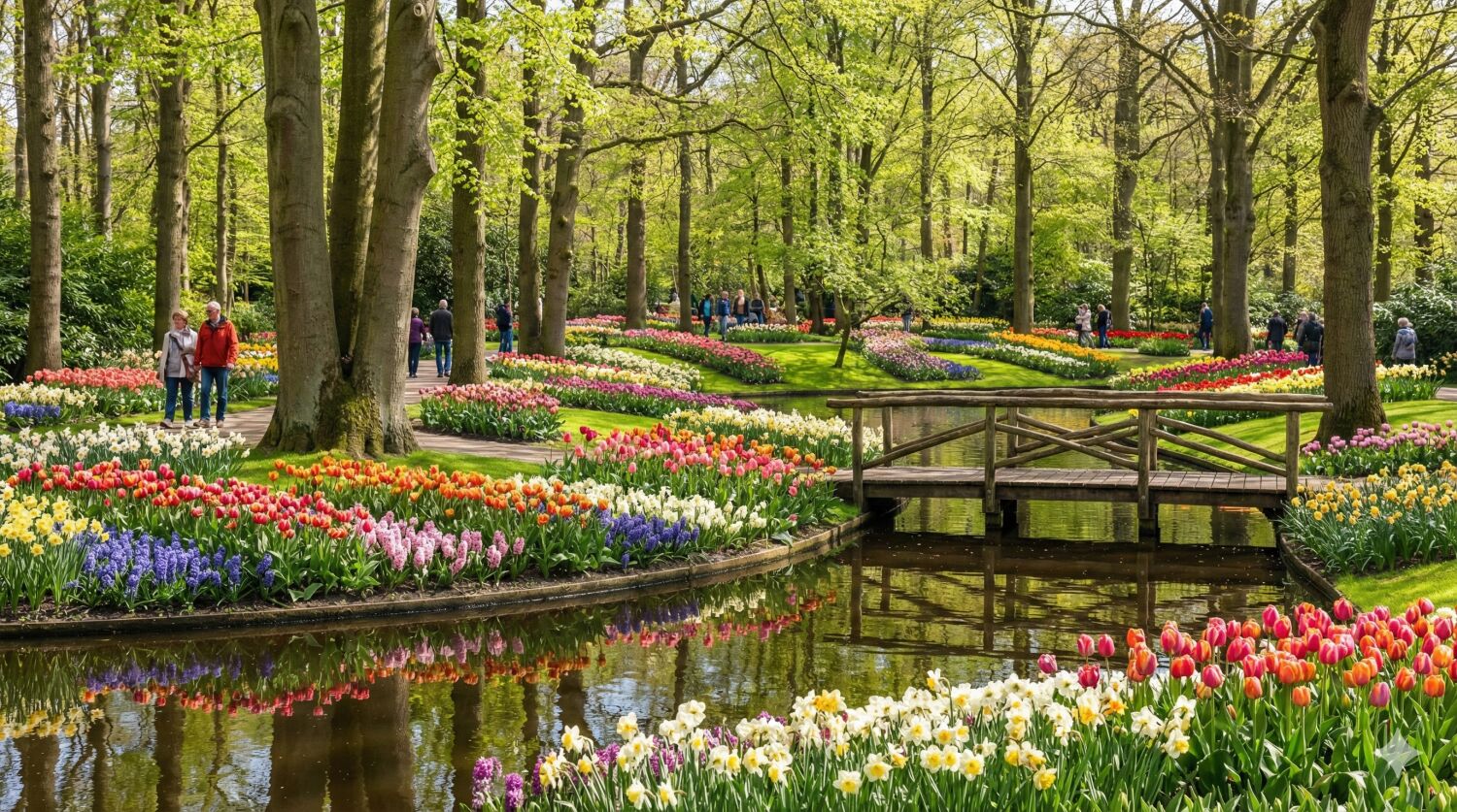 | 13 | オランダ | キューケンホフ公園 | 球根花 | 歴史ある森と池に囲まれた庭園風景 |