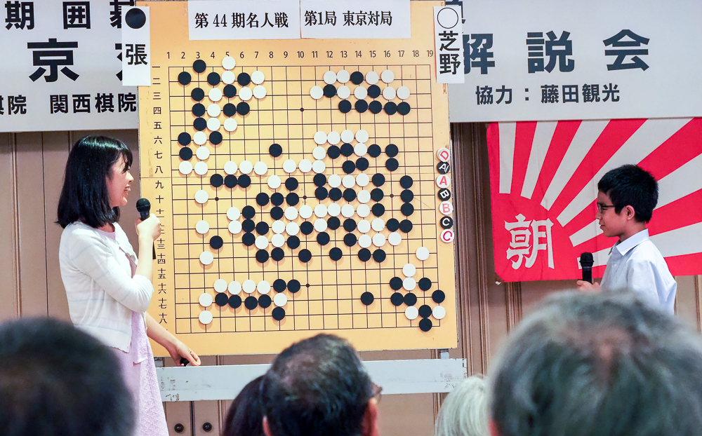 大盤解説会場では上野愛咲美女流棋聖(17)と今年プロ入りした福岡航太朗初段(13)のダブル解説が続いている。 メーン解説のはずの趙治勲名誉名人が2人にバトンタッチして、かれこれ30分以上。「きょうの午前中まで白(挑戦者)がよかったと思ってたんですが、午後に白にミスが出たようで、いまは黒(名人)がいいと思います」。堂々の解説に上野女流棋聖が「おー、解説すごい!」と驚嘆。いつの間にか聞き手・上野女流棋聖、解説・福岡初段の役回りとなっている。(朝日デジタルより)