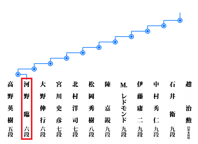河野臨六段の11連勝のおかげで決勝トーナメントに進出した大矢浩一九段と河野臨六段が一回戦で対戦し、河野臨六段が負けた。恩を仇で返されたと思ったかもしれない(笑)。第33期竜星戦決勝トーナメント準決勝の福岡航太朗六段と広瀬優一七段の対局のテレビ解説者として河野臨九段が笑いながら昔話をしていた。ちなみに、大矢浩一九段と河野臨九段は小林光一名誉棋聖門下の兄弟弟子である。