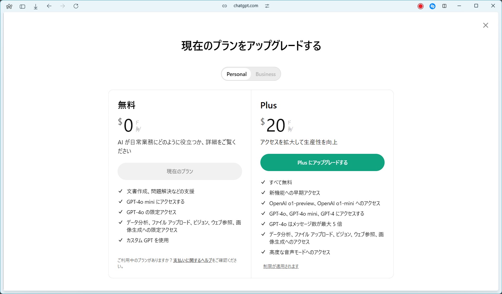 昨年、ChatGPTの使い方を当サイトに掲載したが、現在では無料版でも使える機能が増えたので再度最新情報にて掲載する。AI関連の仕様は発展中であることや、競争が激しいため頻繁に変わる。