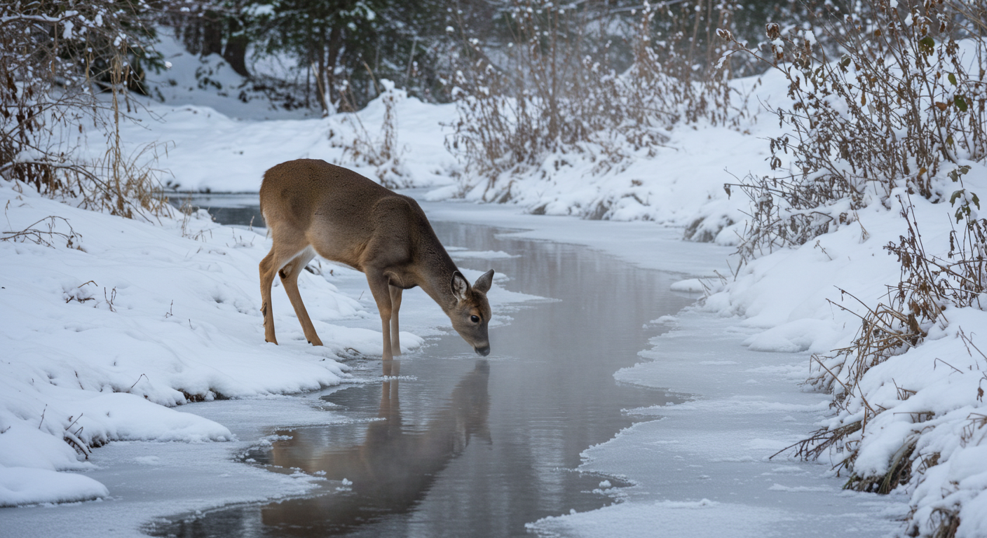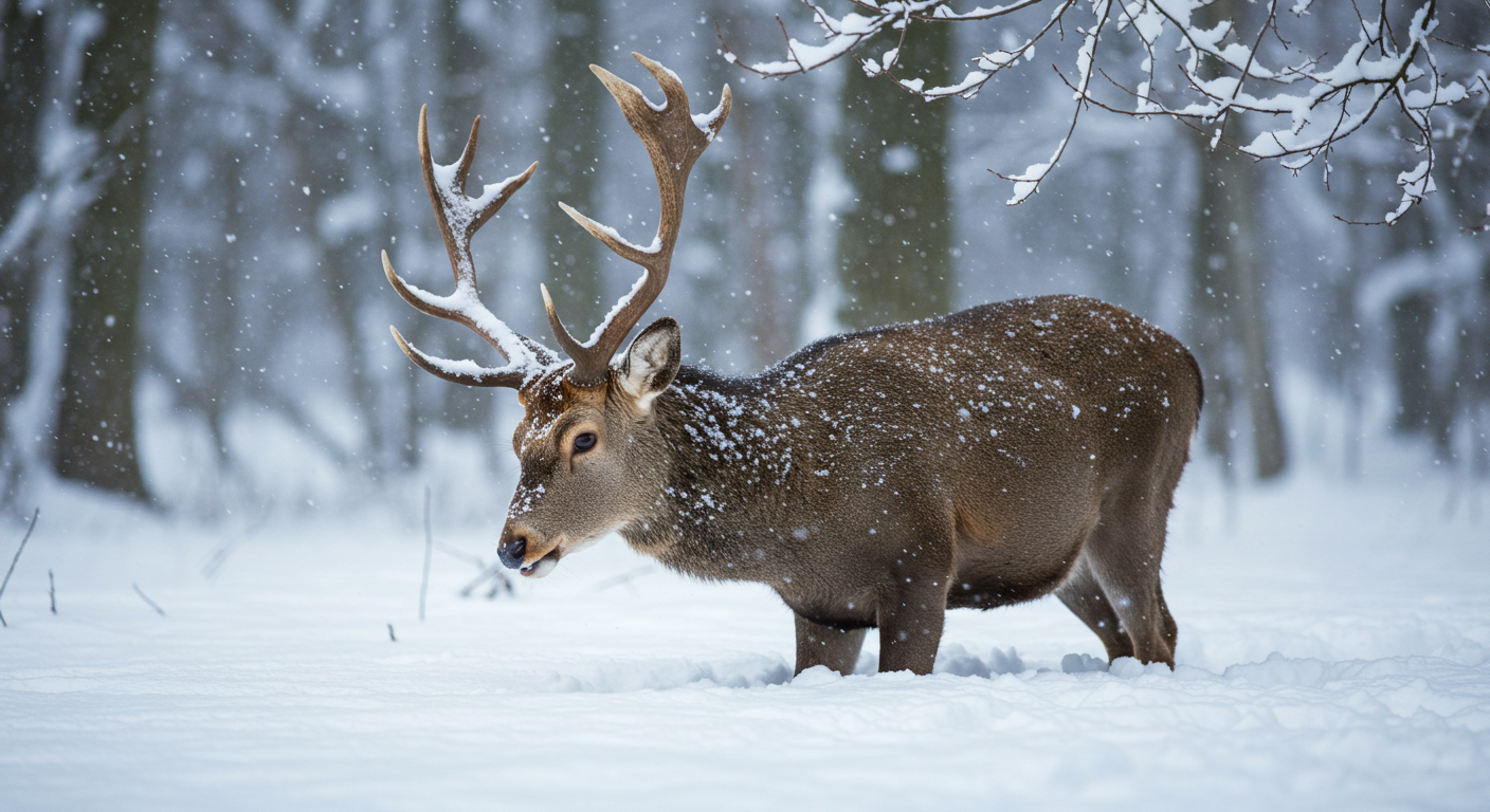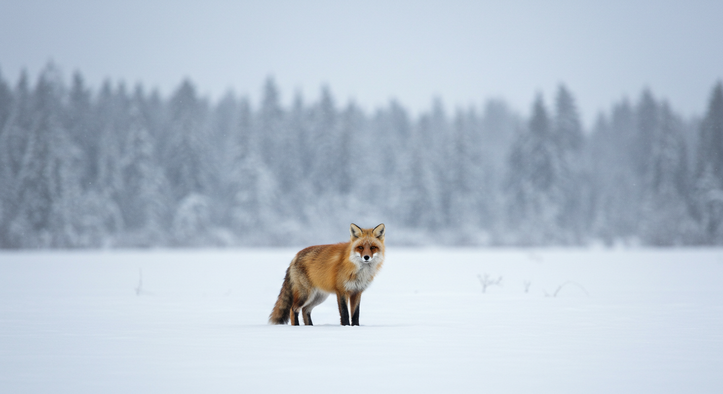 野生動物が厳冬に生き抜く画像、ChatGPTにアイデアを出させImageFxに画像生成させた。