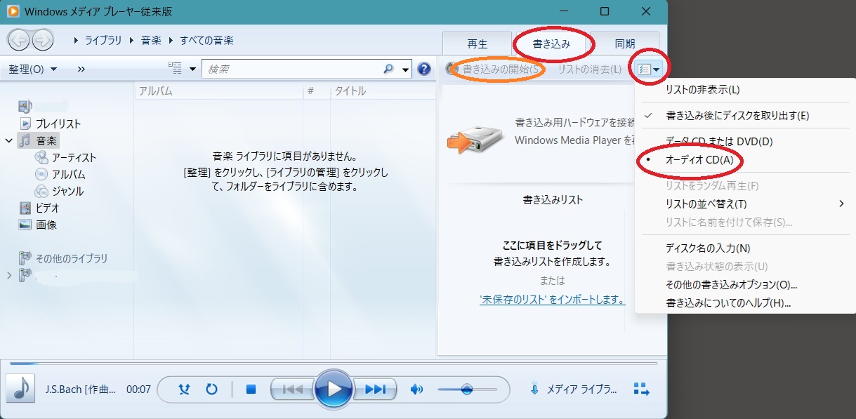 役に立たないとは分っていたが、メディアプレーヤーのhelpからサポートページで「windows11のメディアプレーヤーでCDに書き込む方法」と質問するとAIらしい回答の中に、次のようなCD/DVDの作成方法が示されている。