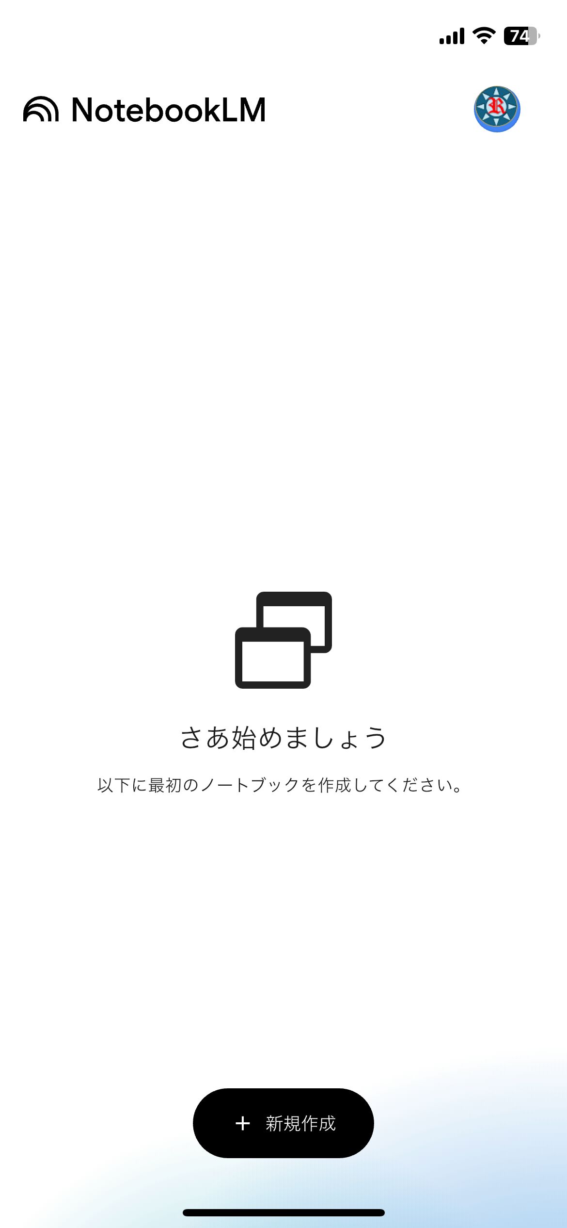 notebookLMを始動。「 + 新規作成」