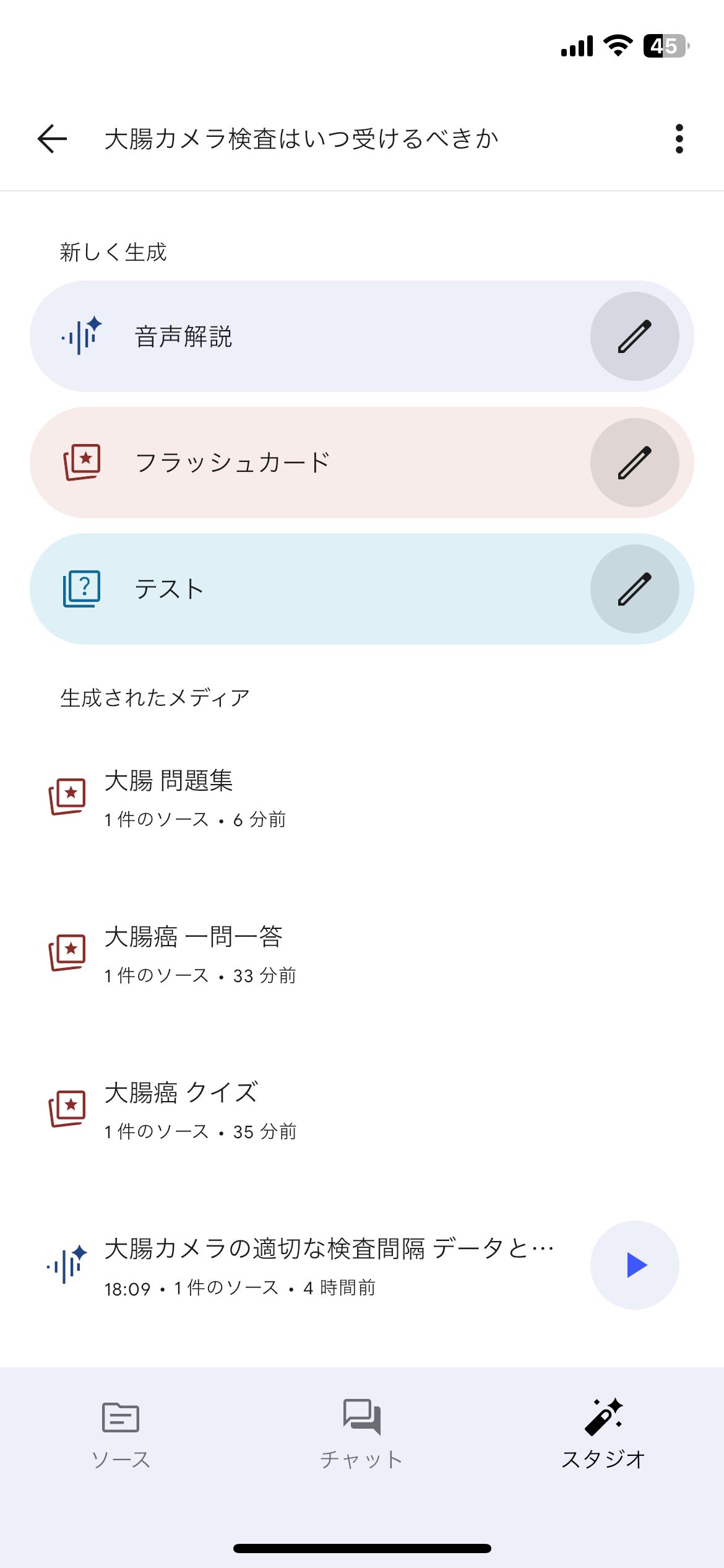 右下「スタジオ」>「大腸カメラの適切な検査間隔データと......」![]()