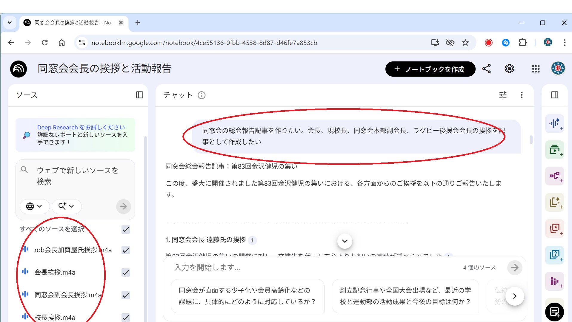 iPhoneの標準アプリ「ボイスメモ」で収録した音声データ(m4a)をNotebookLM の入力ファイルとして会議などの要約作成。