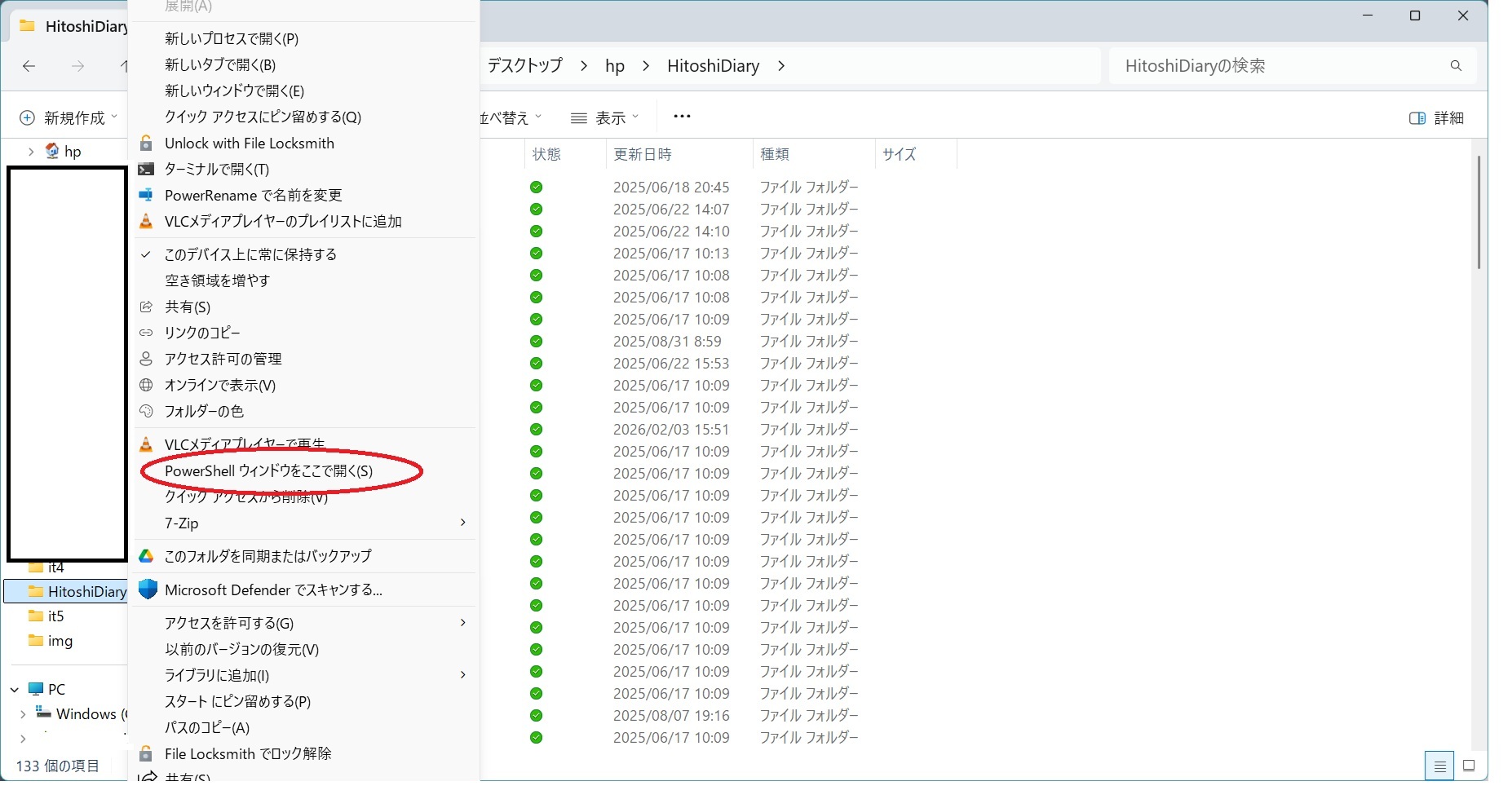 無料のサイトマップツールを使うのはやめて、powershellから直接コードを実行する方法でサイトマップは作成できた。サイトのページの格納しているフォルダーのリストで、Shiftキーを押しながらマウスの右クリック、表示されるタグから「powershellウインドウをここで開く」を選択。