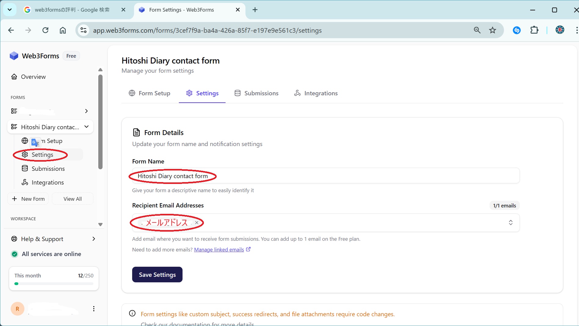 代替えアプリとしてGeminiに相談しweb3forms を使うことにした。