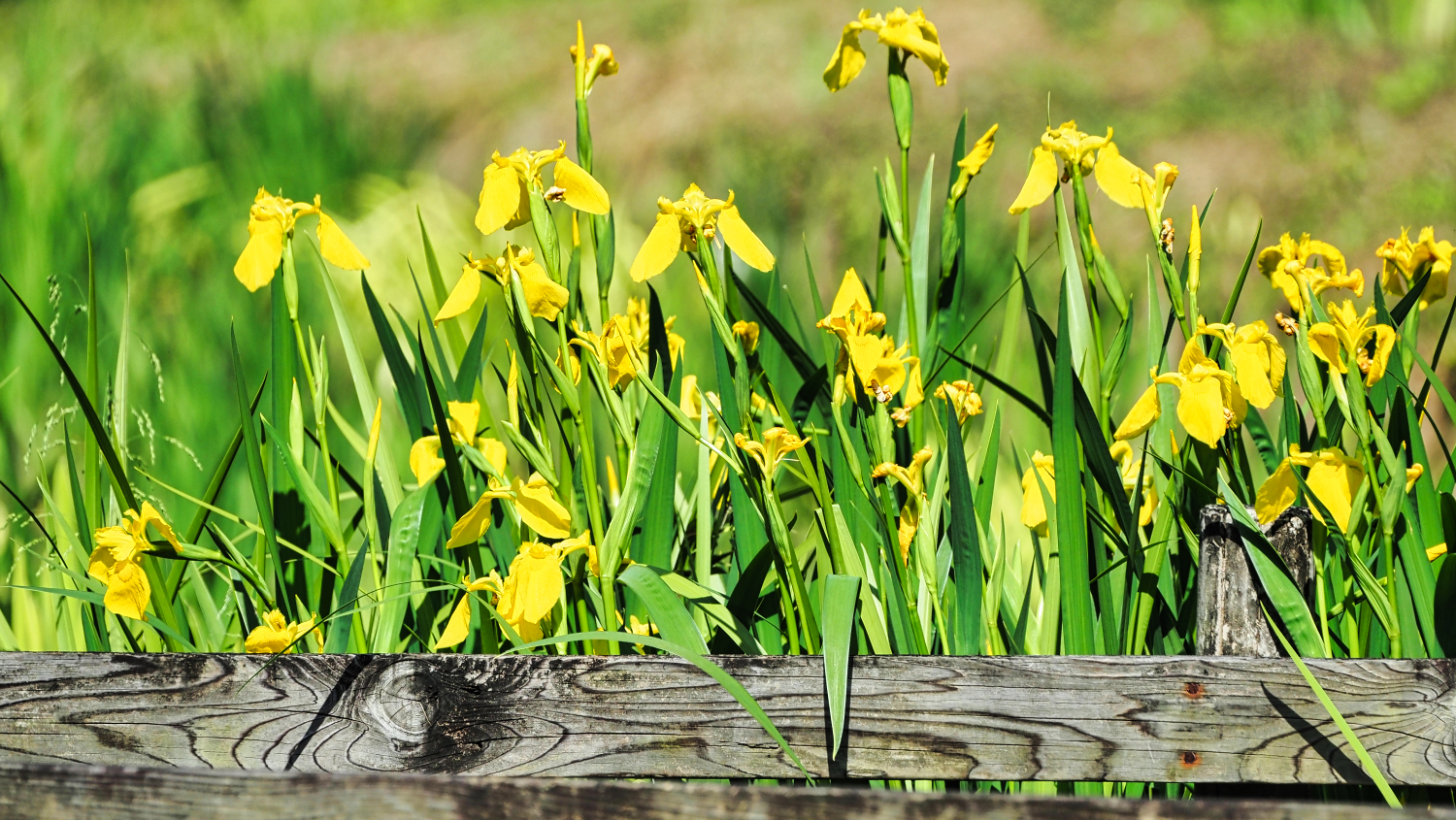 薬師池では池に垂れ下がる桜やモミジがあざやかな新緑色となっている。