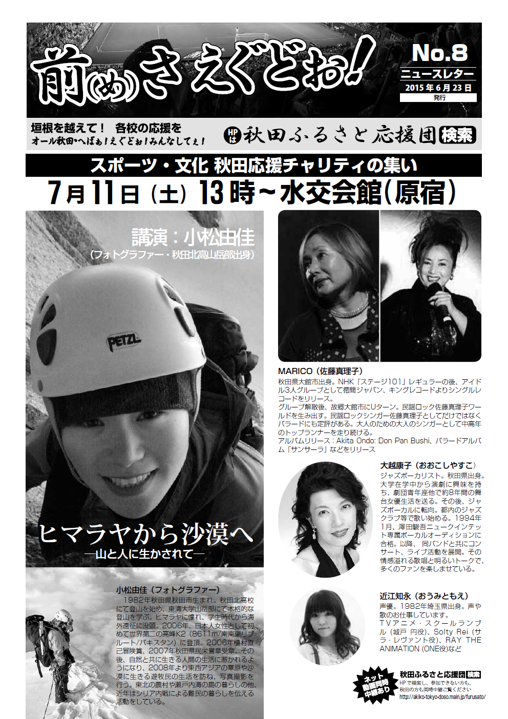 小松由佳さんに初めて会ったのは2015年7月11日に原宿の水交会館で開催された第4回 「秋田ふるさと応援団 スポーツ・文化秋田応援チャリティの集い」で講演して頂いた時だった。