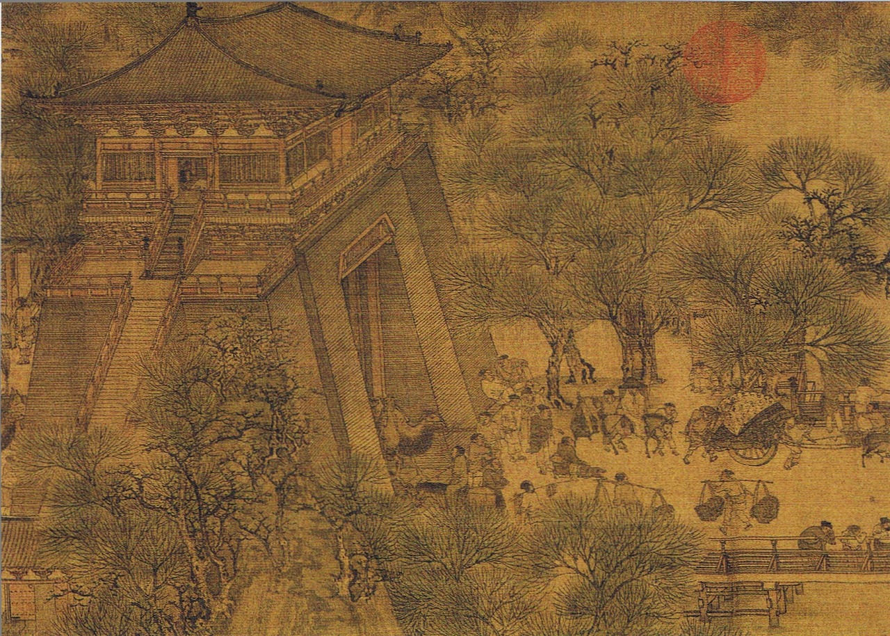 中国美術史上屈指の名画といわれる「清明上河図(せいめいじょうかず)」(北宋時代)が展示されていたが、本物は1月24日までで、以降は複製品とあったが、それでも見事なものであった。12世紀の生き生きとした一般庶民のくらしが鳥瞰図的に細かい筆遣いで巧みに描かれている。