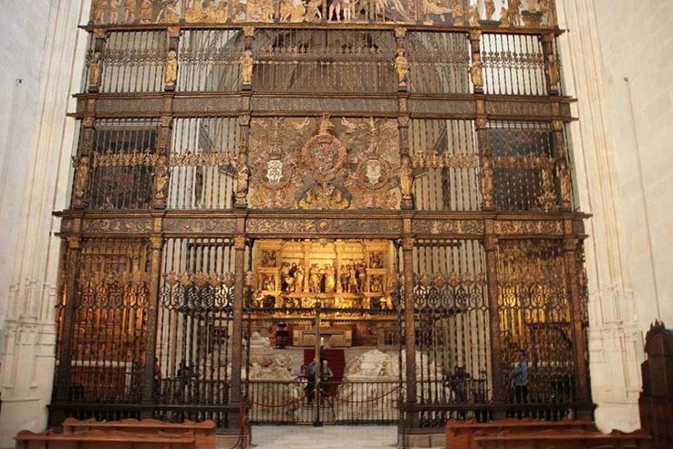 中に入ると、目の前に壮麗な金色の鉄柵が立ちはだかります。名工バルトロメ・ダ・ハロンが1520年に制作。