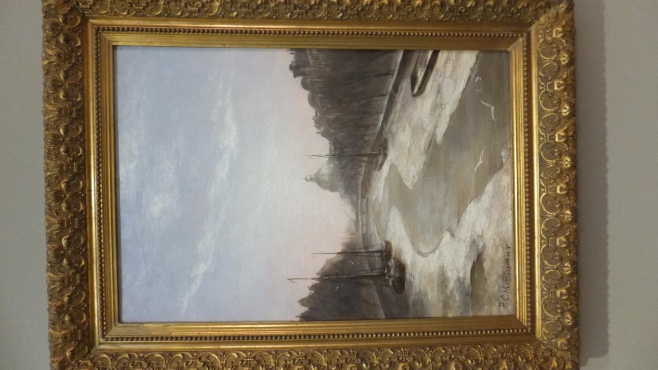 展示中のモンドリアン作品の最初期のものは「アムステルダムのシンゲル運河」。 アムステルダム国立美術アカデミーで勉強中の風景画。