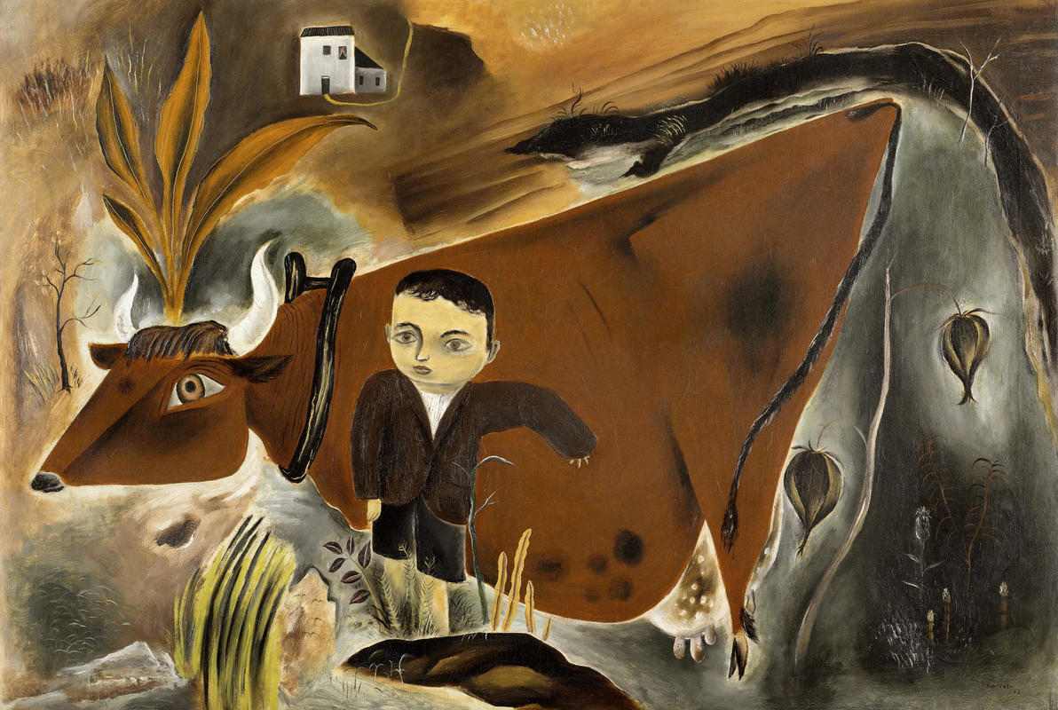 生涯アメリカ国籍を収得できなかったものの、アメリカ人として遇されている 国吉康雄(第106回参照)の「牛といるジョー少年」も味のある作品です。