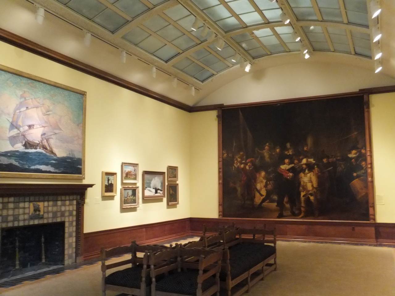 常設展示用の部屋の壁に原寸大のレンブラントの「夜警」が架かっていました。 この絵はアーケルがアメリカ人画家のマーティン・コペルショエクに依頼して 描かせたもので博物館の開館に合わせて1927年完成。 博物館はこの作品が丁度納まるように設計されたのだとか。