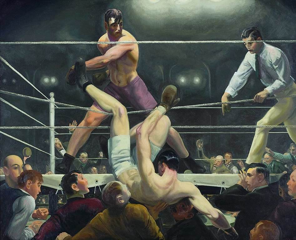 何らかの媒体で彼の代表作「ジャック・デンプシーとフィルポ」をご覧になった 方もおられるでしょう。それまで誰も描いたことのなかったボクシングを題材に ドラマティックな構図で一瞬の出来事を見事に活写してくれています。