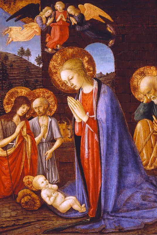 作者は第736回で触れたコジモ・ロッセリ。 この絵はキリストの降誕場面ですが既にキリストの死を暗示する描写があります。