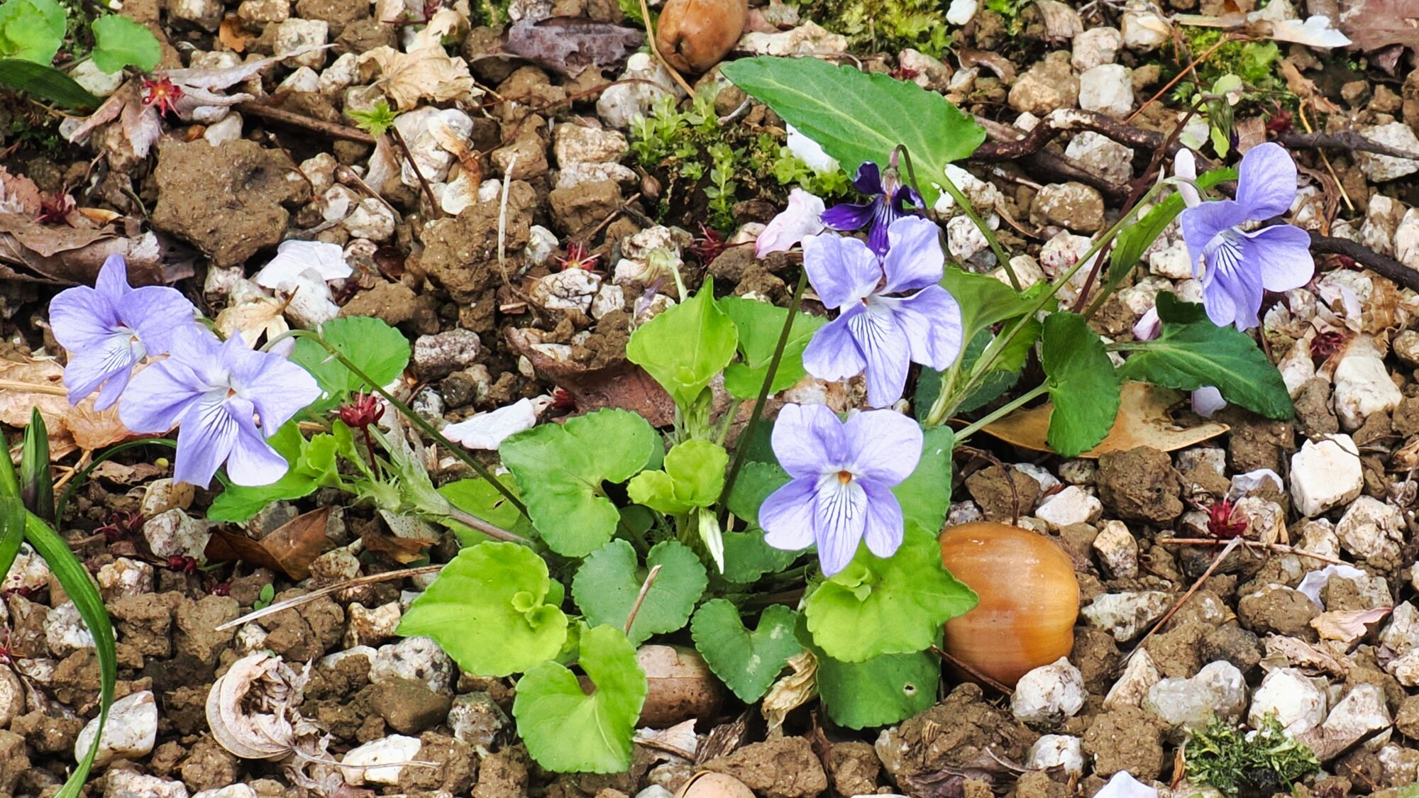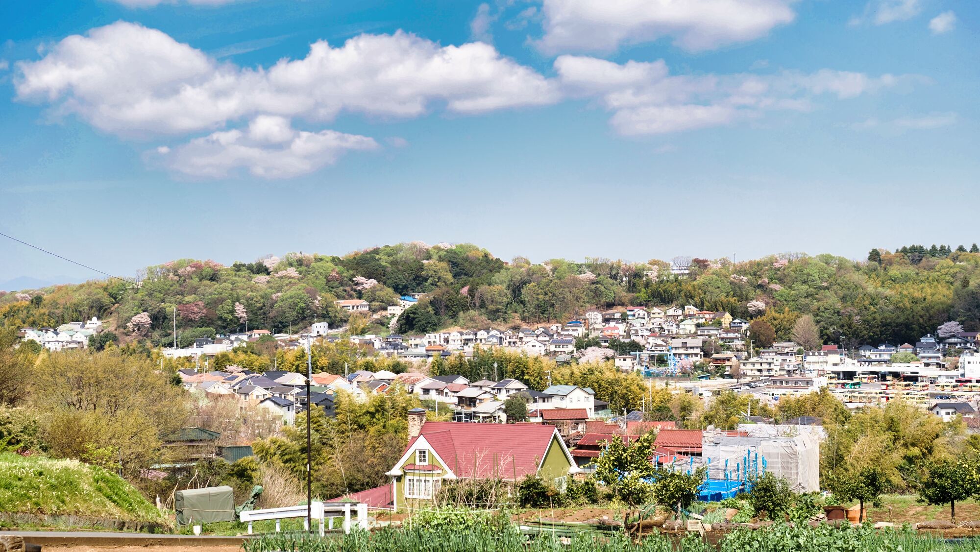 鶴見川沿いを上流方向に登っていくと川沿いや遠くの住宅地の背後の雑木林の若芽が萌え山桜などの花も見える。鎌倉古道を通って七国山の急な坂道を登る。