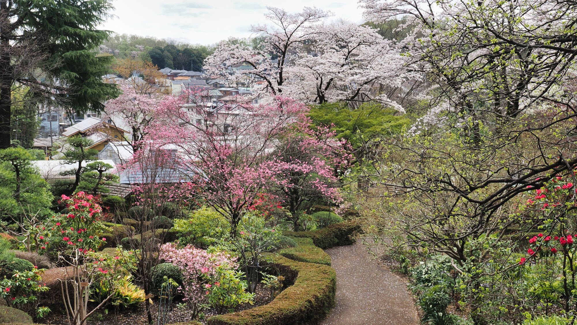 東京のソメイヨシノの開花が3月24日、満開が3月30日という。ソメイヨシノの満開が過ぎ、町田ぼたん園のぼたんの蕾が膨らんで来る頃、ひっそりとしたぼたん園では散り際の桜と共に八重桜、ヤマザクラ、ハナモモやシャクナゲが綺麗に咲きそろう。ぼたんの見頃以外は入場無料である。