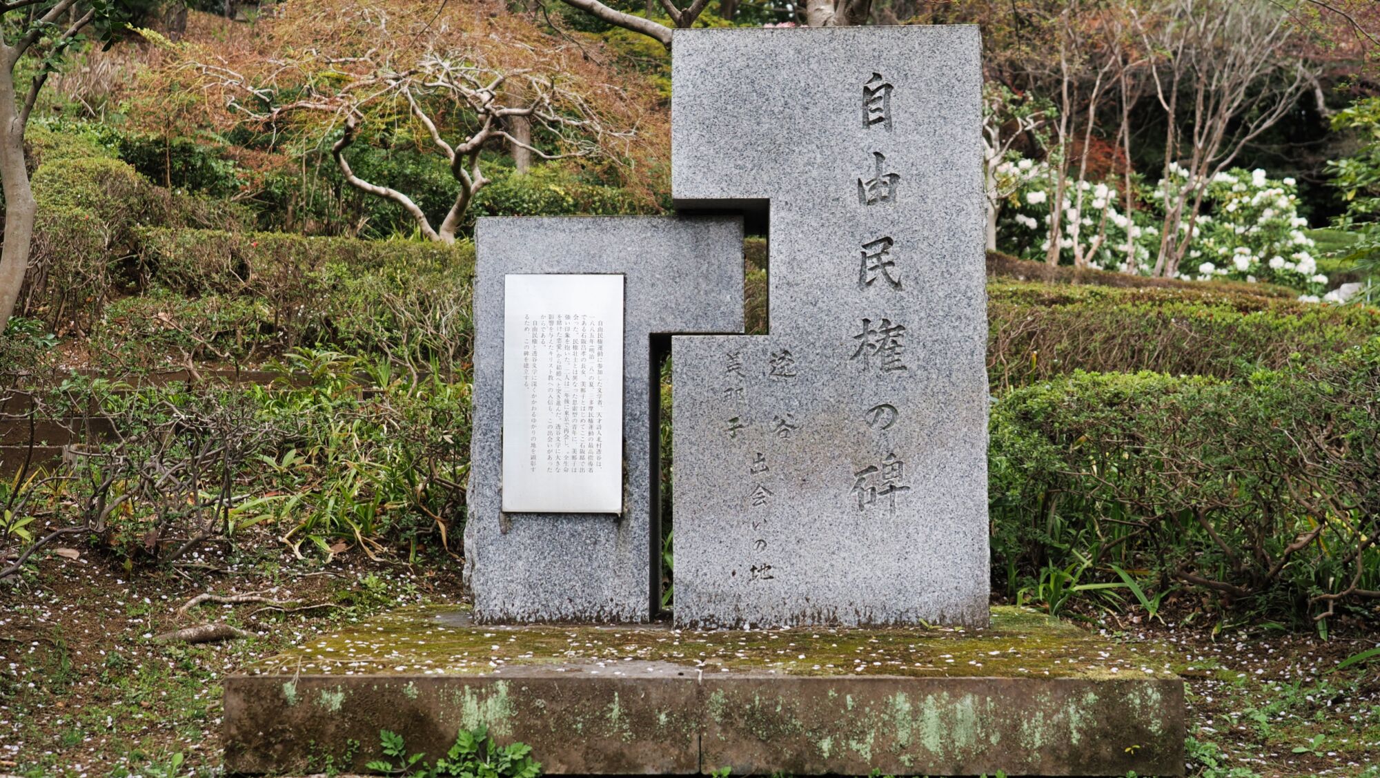ぼたん園の「奥庭」と呼ばれている門の近くに自由民権の碑があって、ここに石坂昌孝の屋敷があった。石坂昌孝(1841―1907)は明治時代の自由民権運動の指導者・政治家で娘が美那(ミナ)。ミナは夫透谷の死後アメリカに留学し帰国して池袋に創立された豊島師範学校の英語教師となった。豊島師範学校は後の東京学芸大学 学芸学部の母体のひとつ。