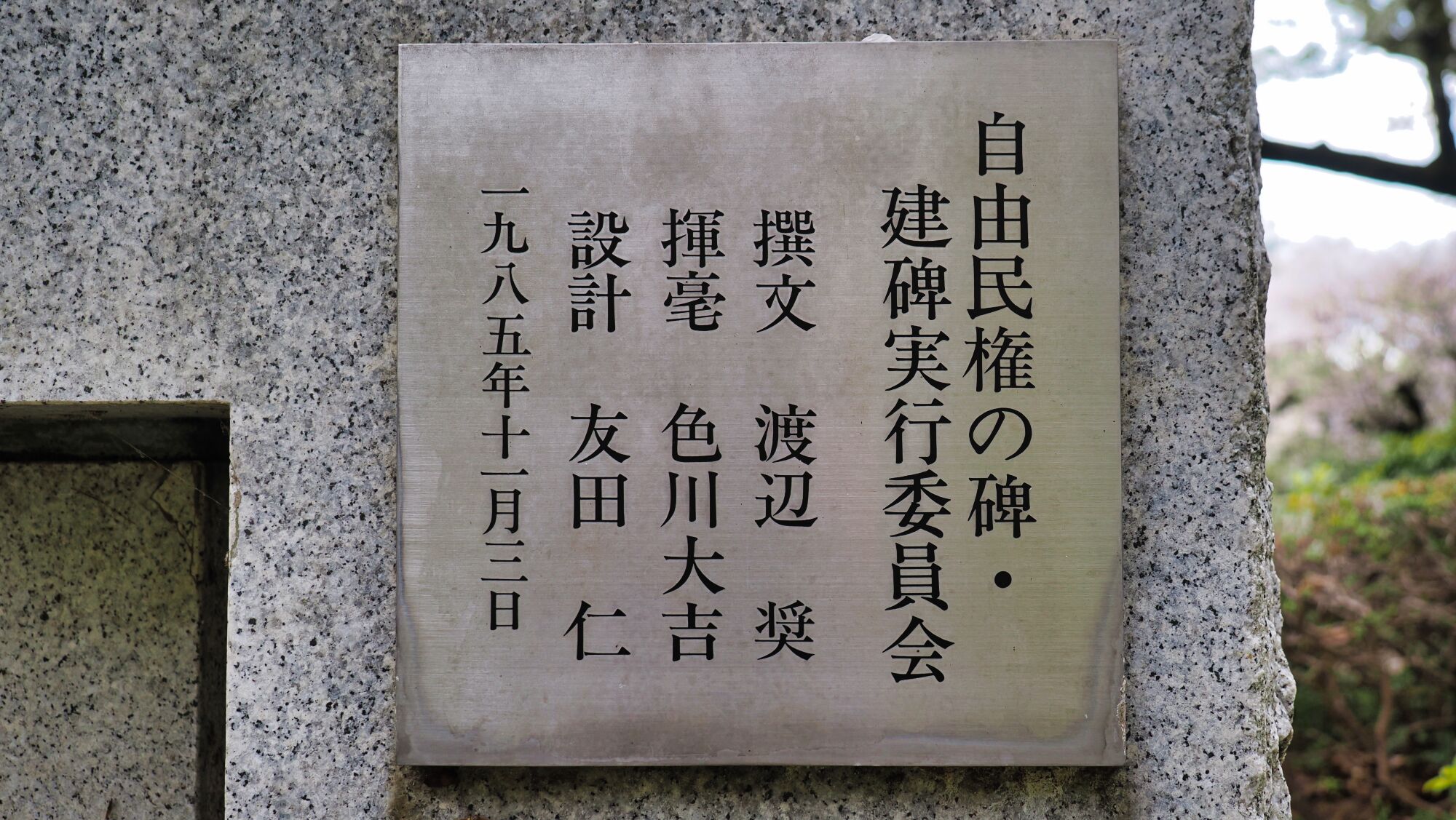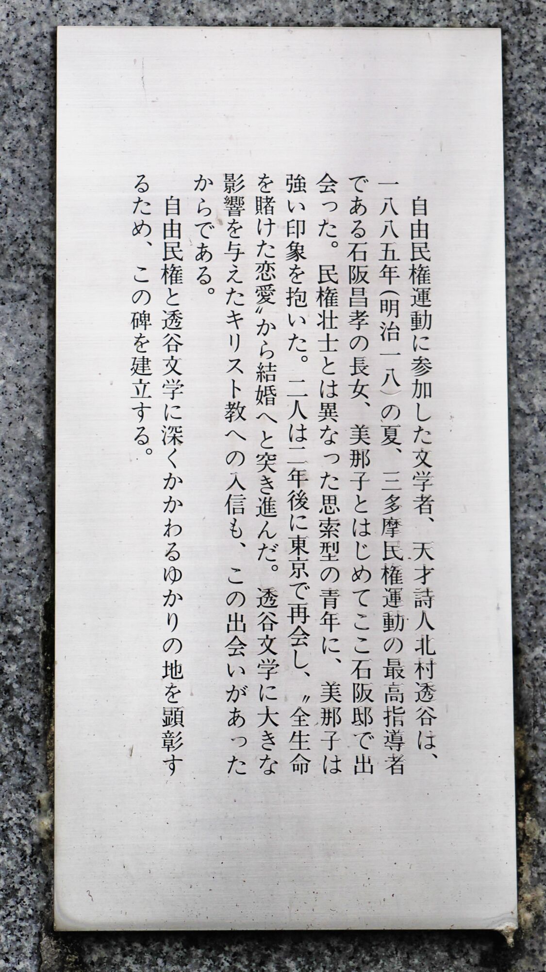 この日のもう一つの目的は、自由民権の碑の写真を撮ること。朝日新聞で連載中の小説 門井慶喜作「夫を亡くして」は、北村透谷の妻ミナが主人公。