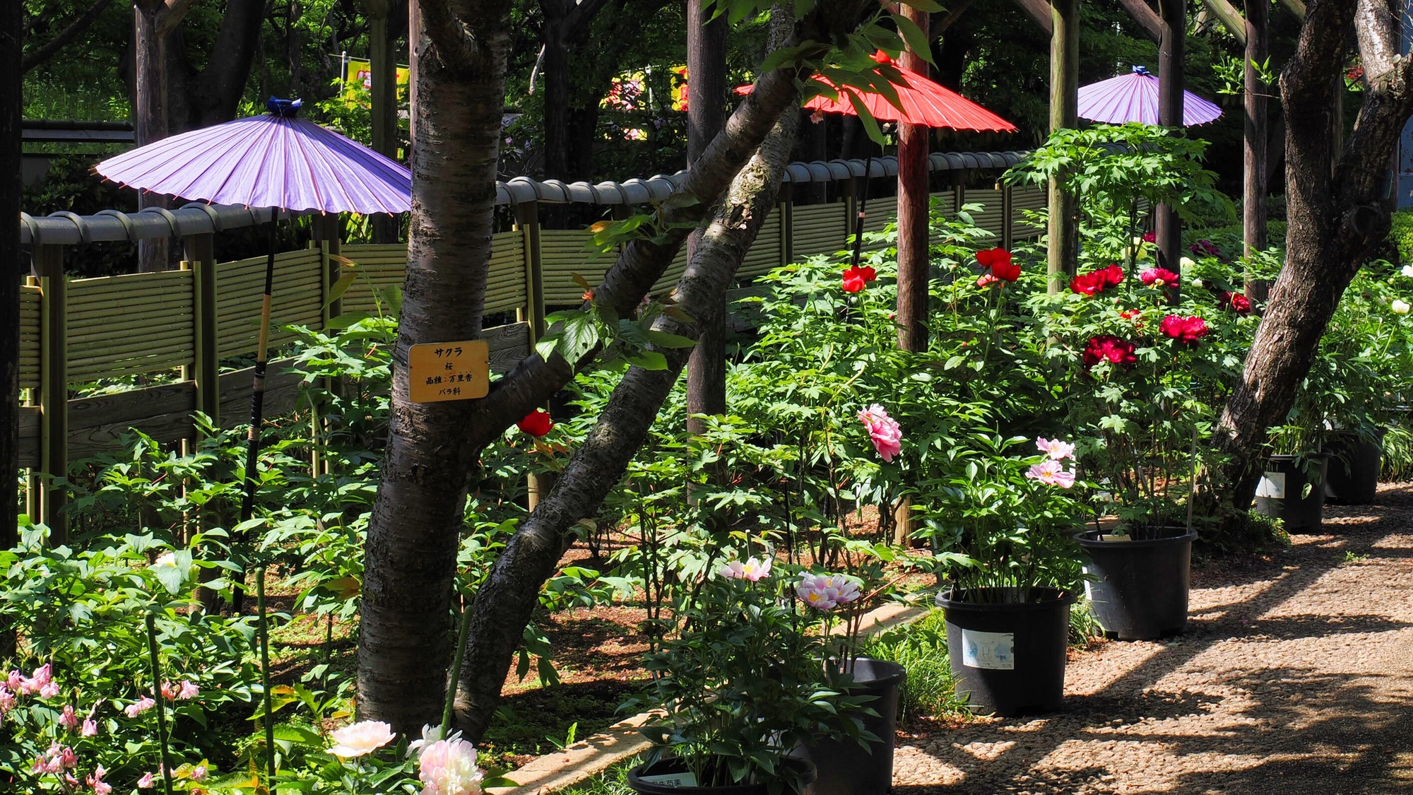 すでにぼたんはほとんどが開花が終わって剪定されていた。シャクヤクが少し咲いていた。それでも好天に恵まれた日曜日とあって入園する人で賑わった。