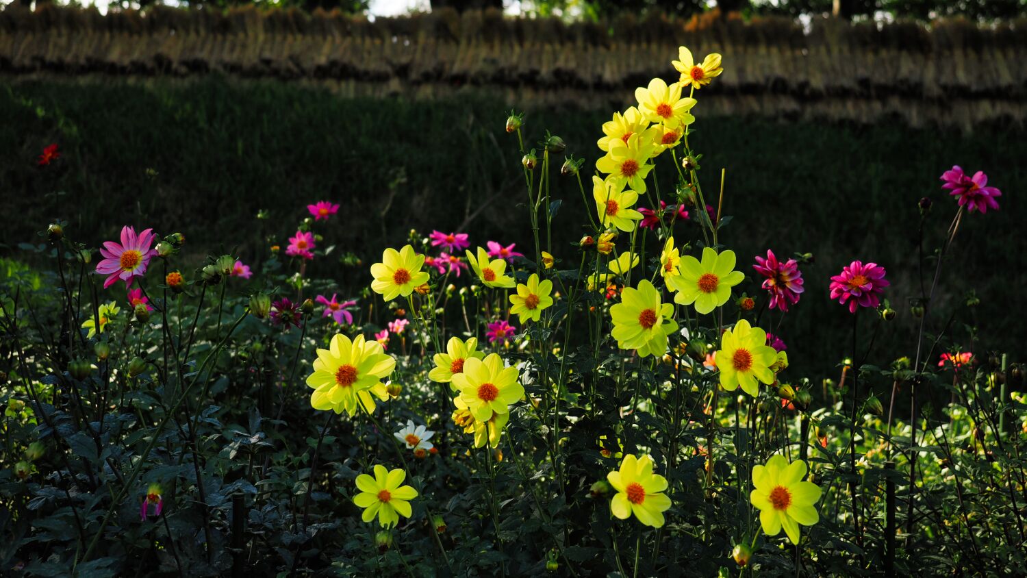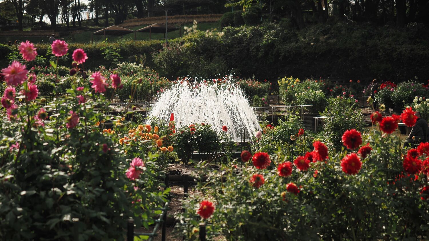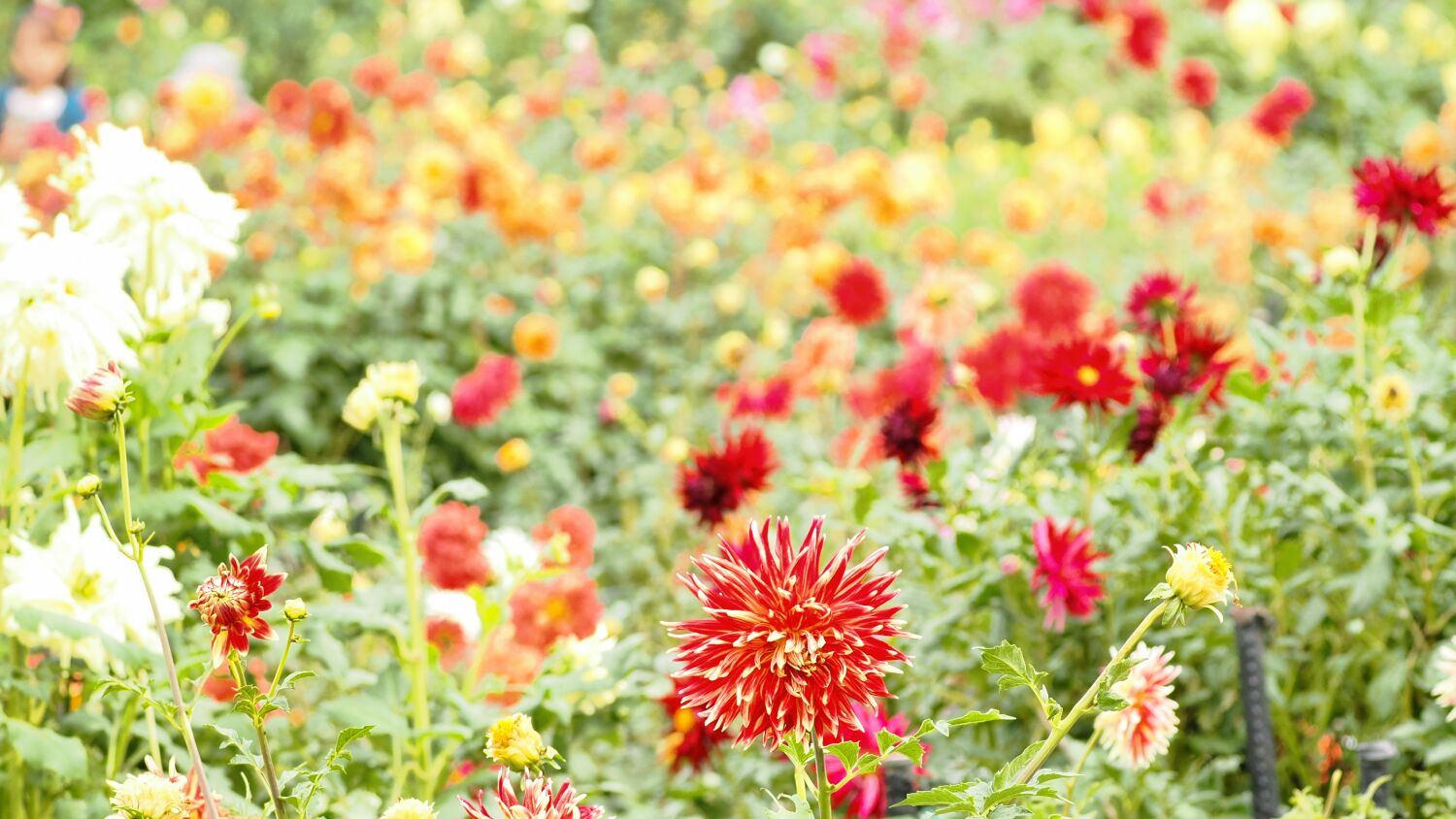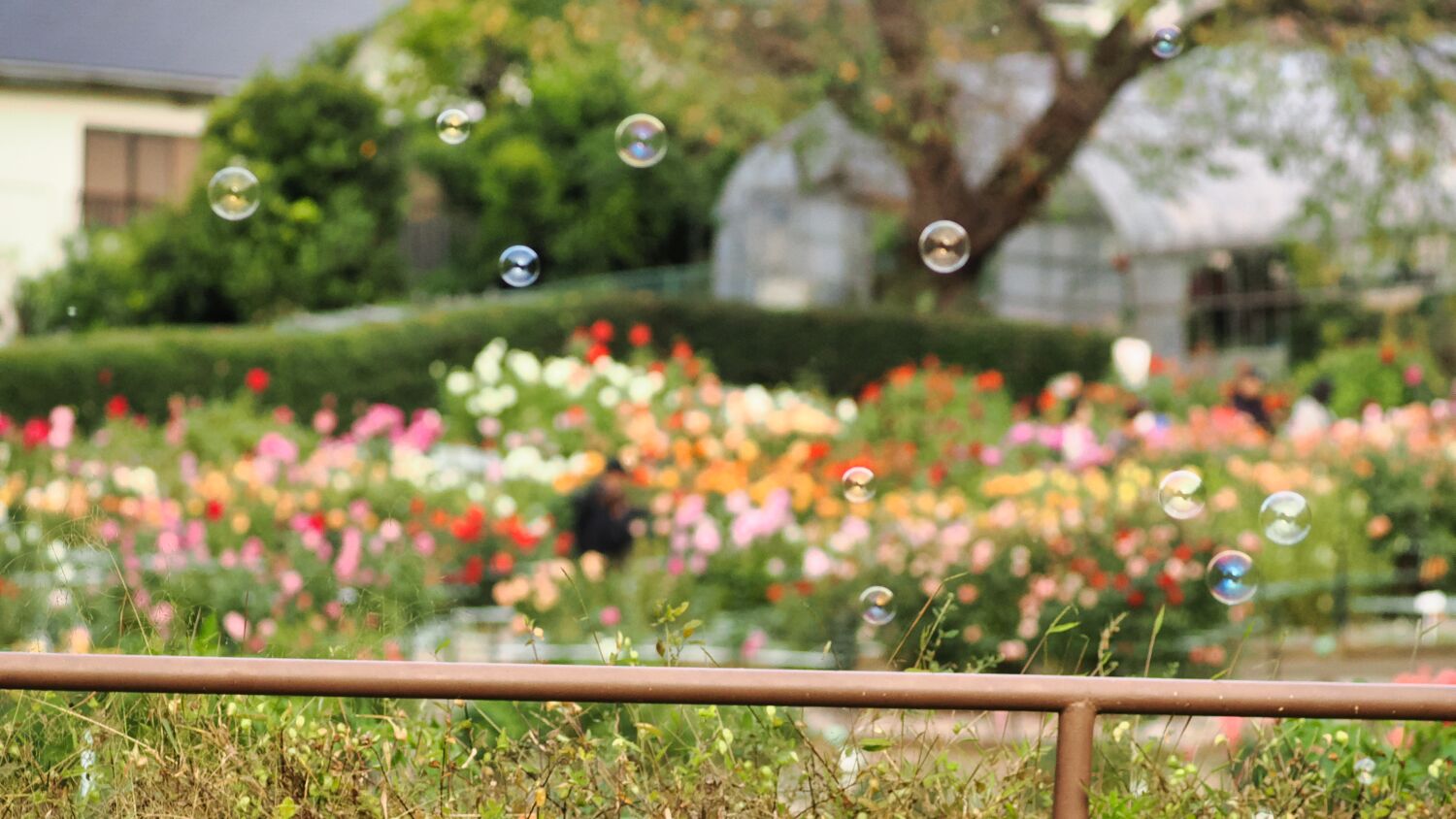 当ダリア園はなだらかな斜面に展開されており、中腹にシャボン玉の自動製作器が設置されていてなんとかカメラに収めた。