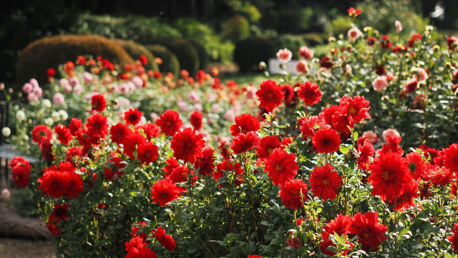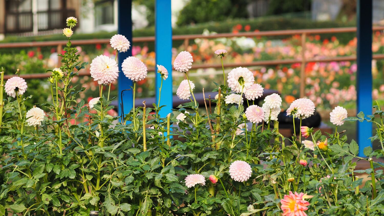 500品種4,000株が栽培されており一つ一つの株がしっかりと支柱に支えられ姿がよく手入れされており、萎れた花柄などはほとんどみられなく、写真撮影にはありがたい。
