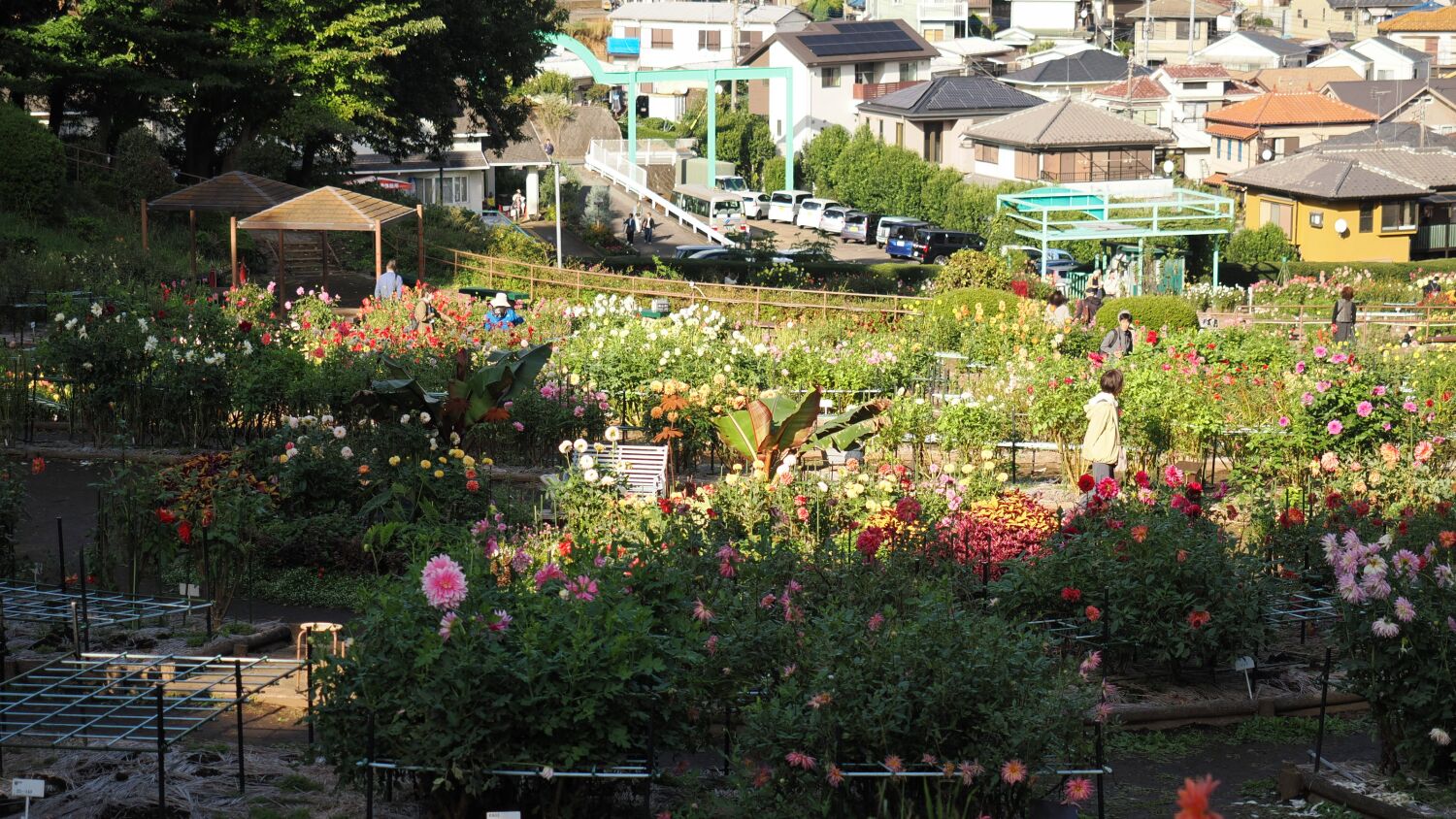 町田ダリア園は1985年の設立で今年は40周年になる。障がいのある人が働く場として町田市が設置し、社会福祉法人まちだ育成会「かがやき」が運営している。