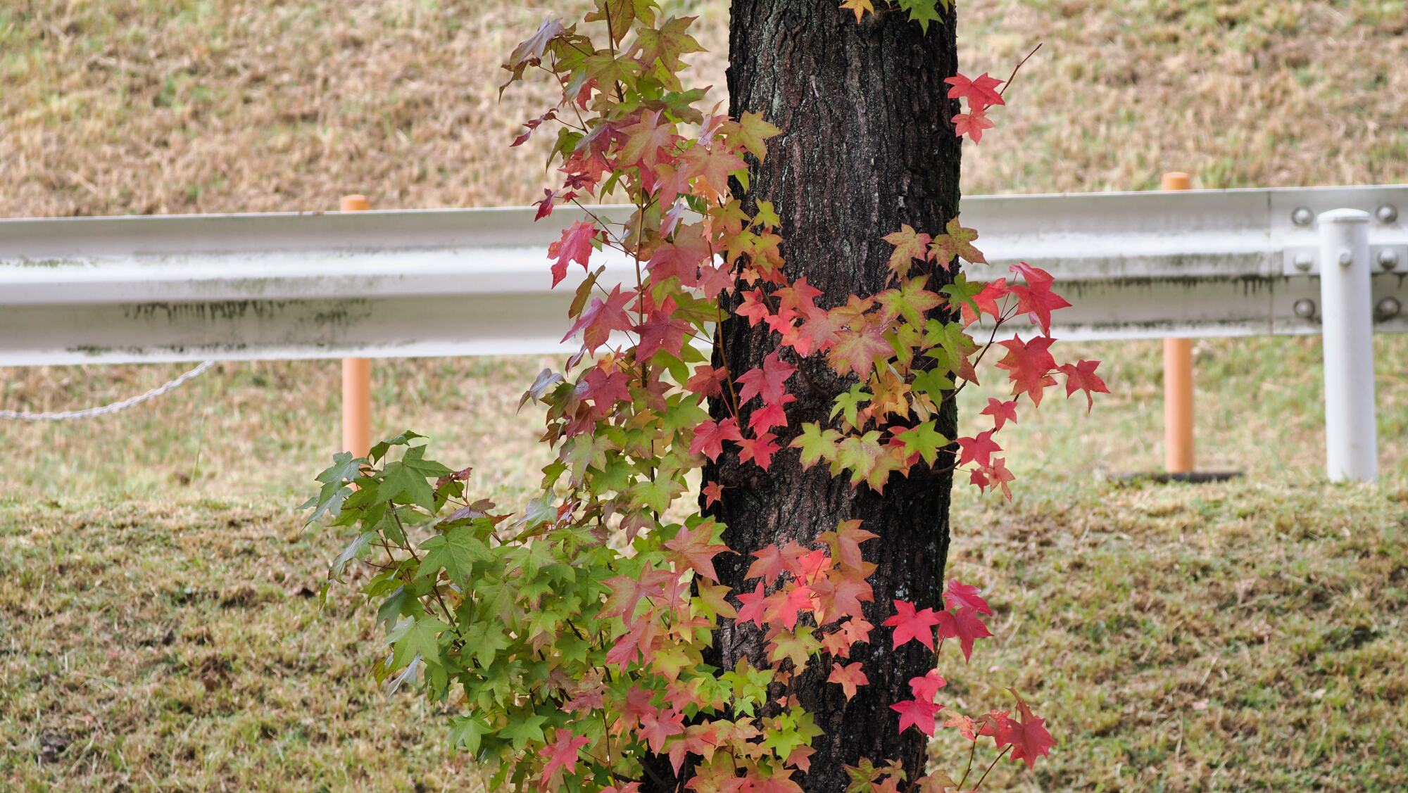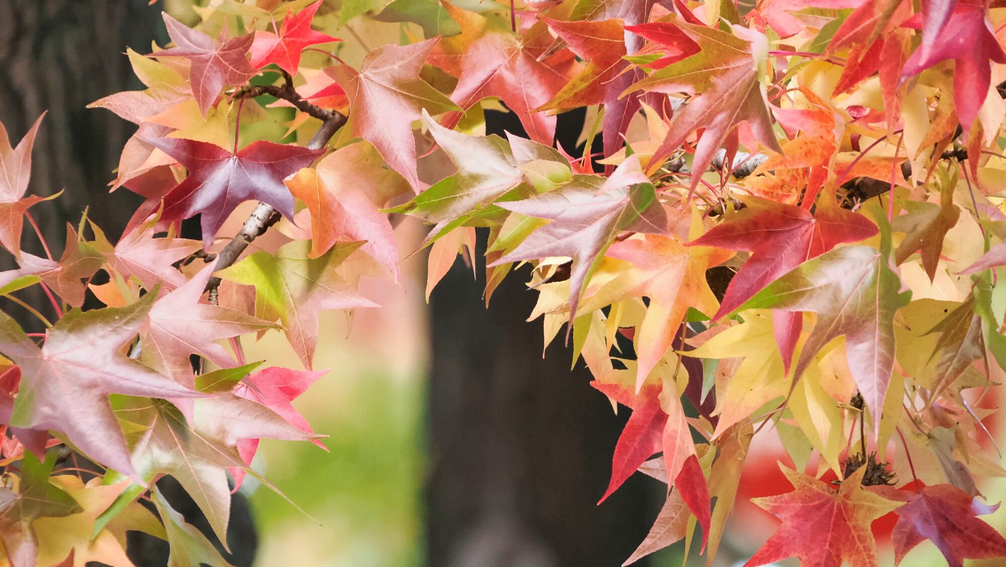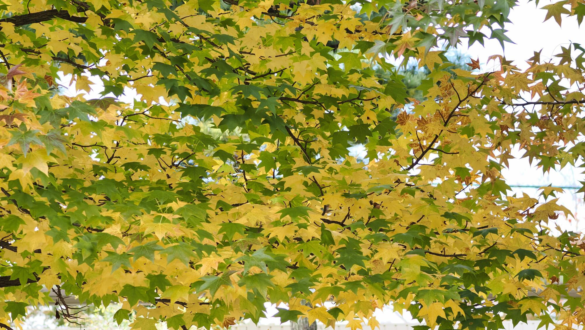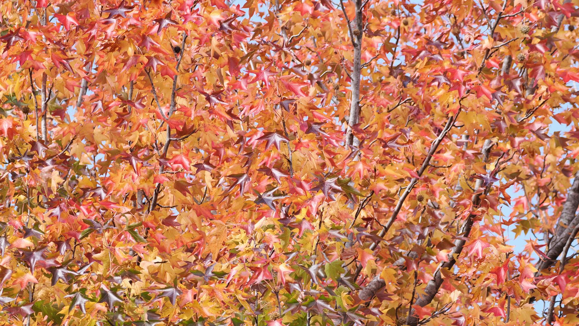 多摩市上之根大通りのモミジバフウ(紅葉葉楓)