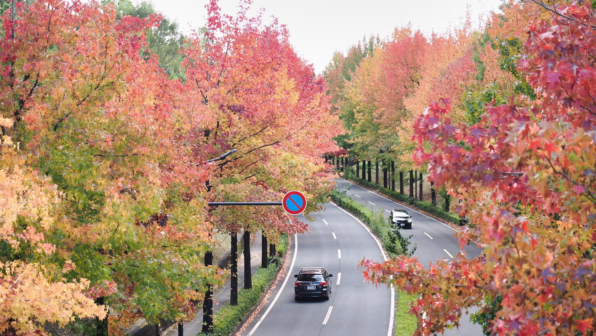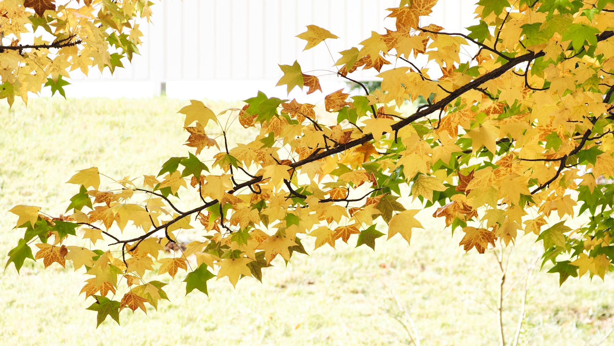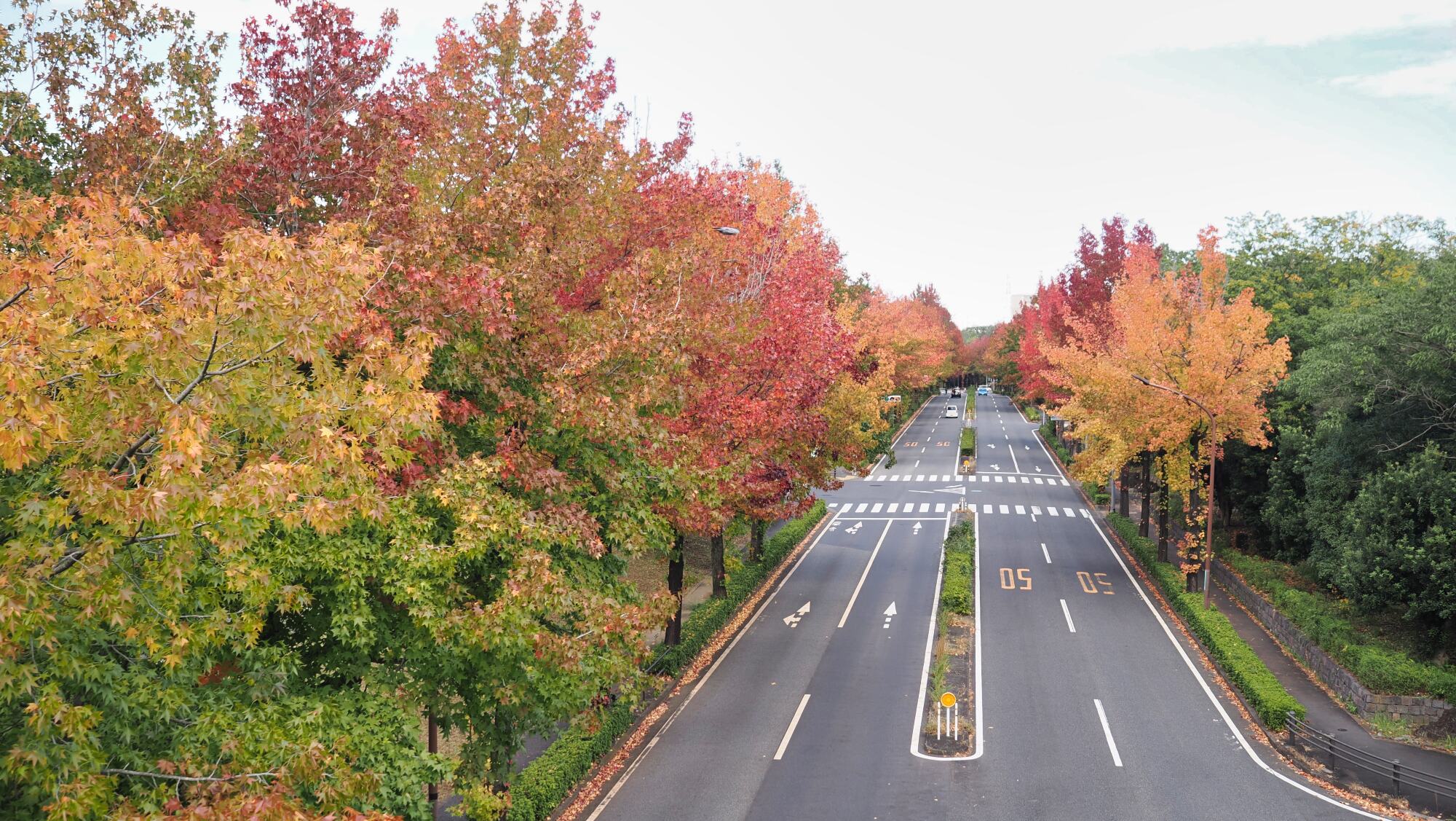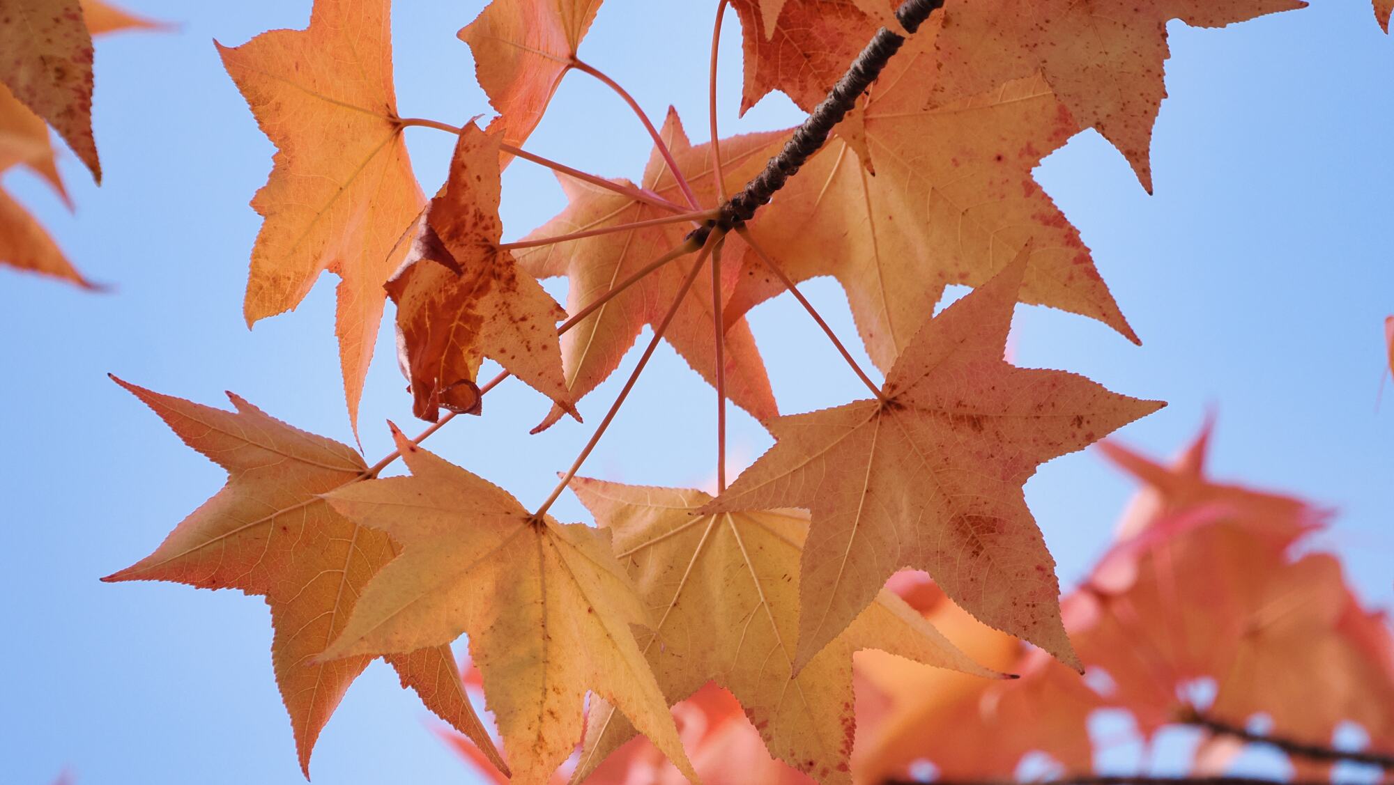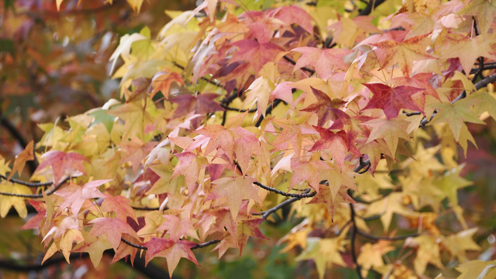 多摩市上之根大通りのモミジバフウ(紅葉葉楓)