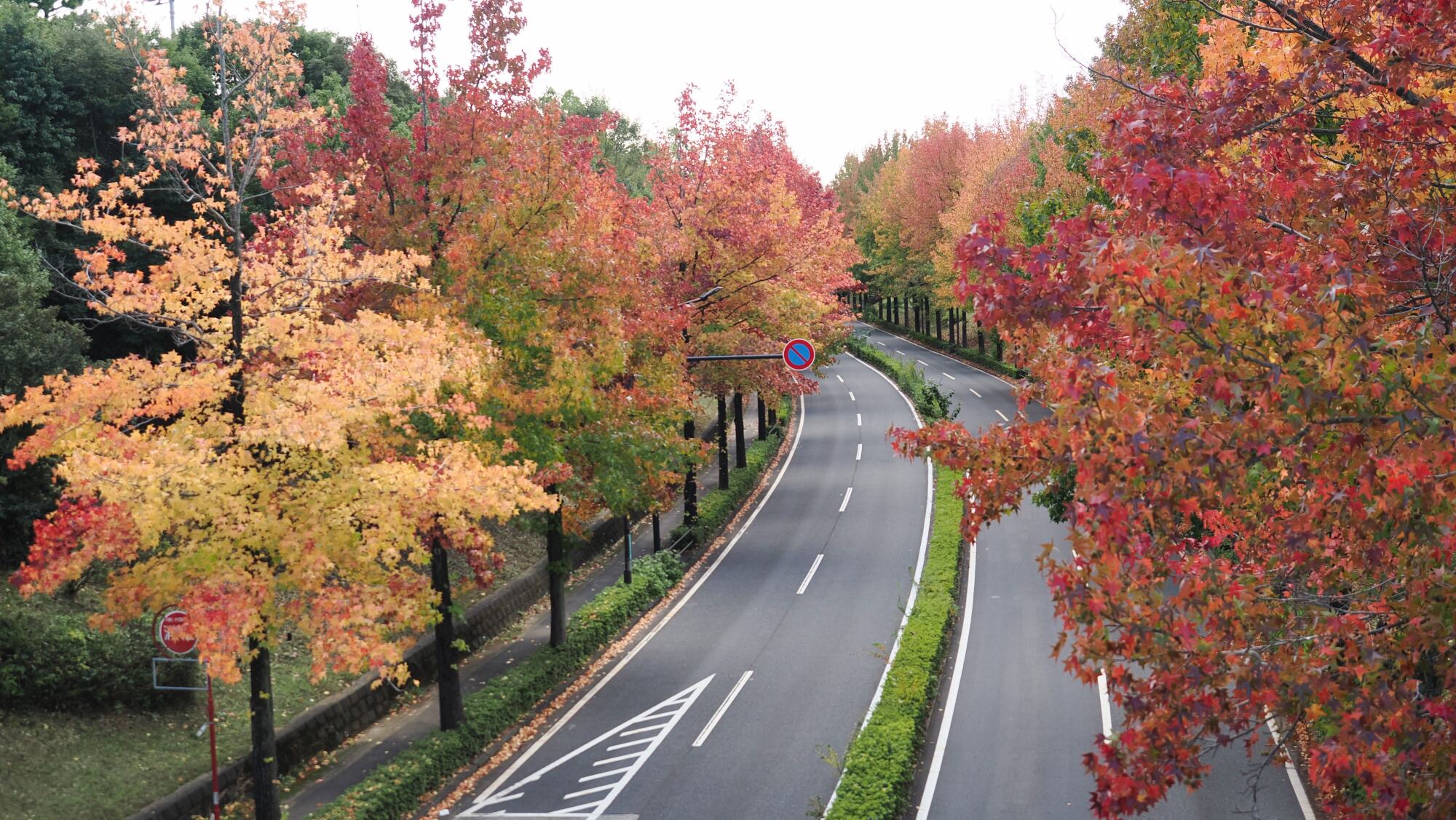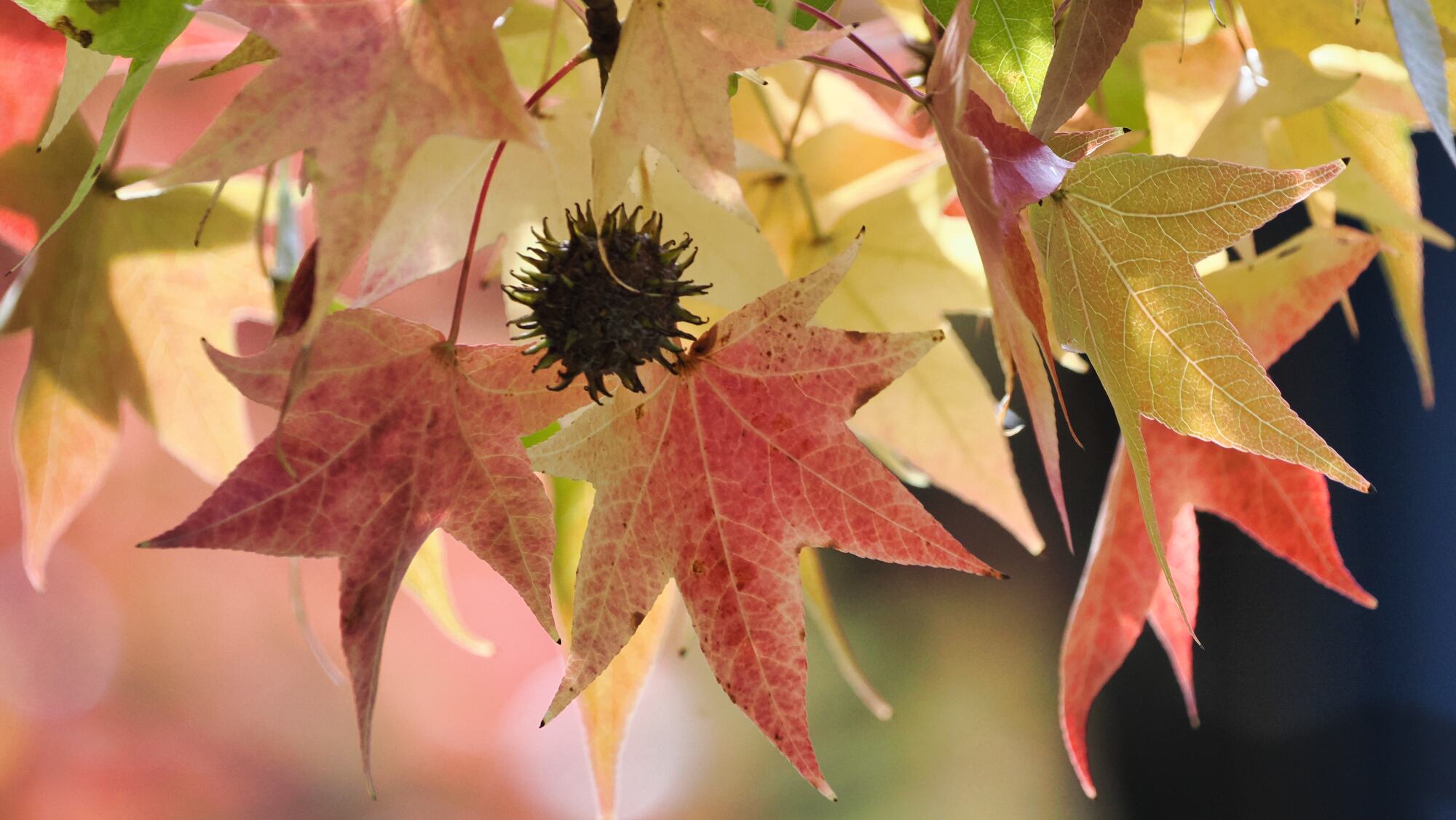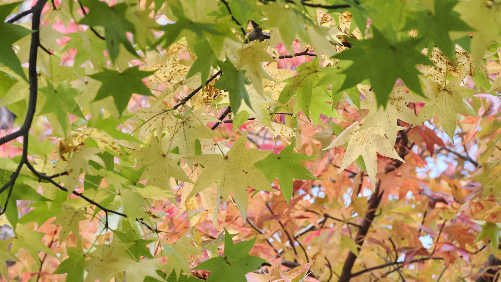 帰り道多摩市上之根大通りのモミジバフウ(紅葉葉楓)を見てきた。北アメリカ中南部・中央アメリカ原産。日本へは、大正時代に渡来した。多摩市落合と豊ヶ丘の間の片側2車線の大通りの両側に1.5キロに渡って300本が植えられている。葉が大きくて赤、赤茶、黄色、緑と多彩な紅葉景色が見られる。