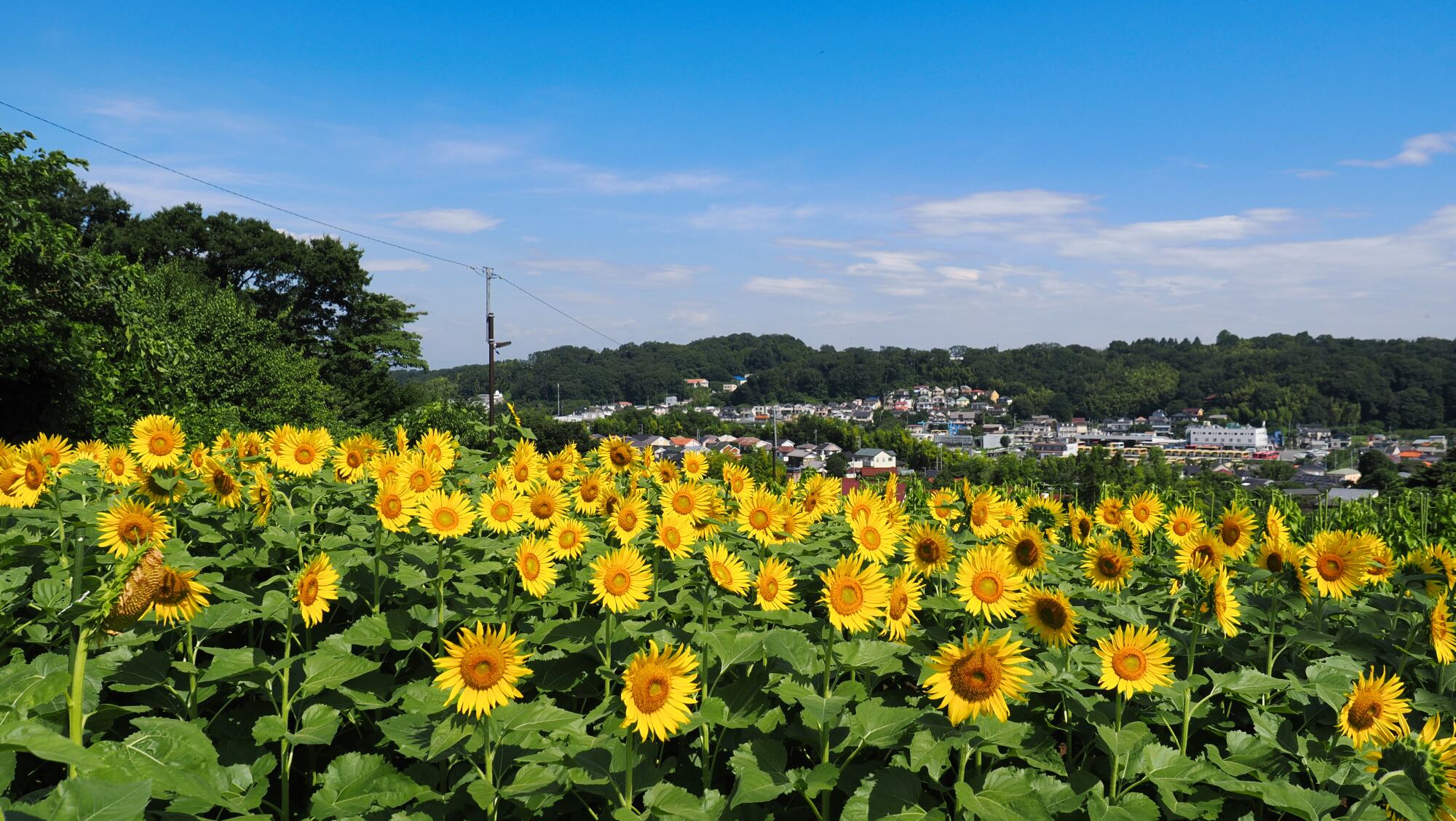 一斉に東の方向に向いている。ここの向日葵は背景に町並みが見えるところが気に入っている構図である。