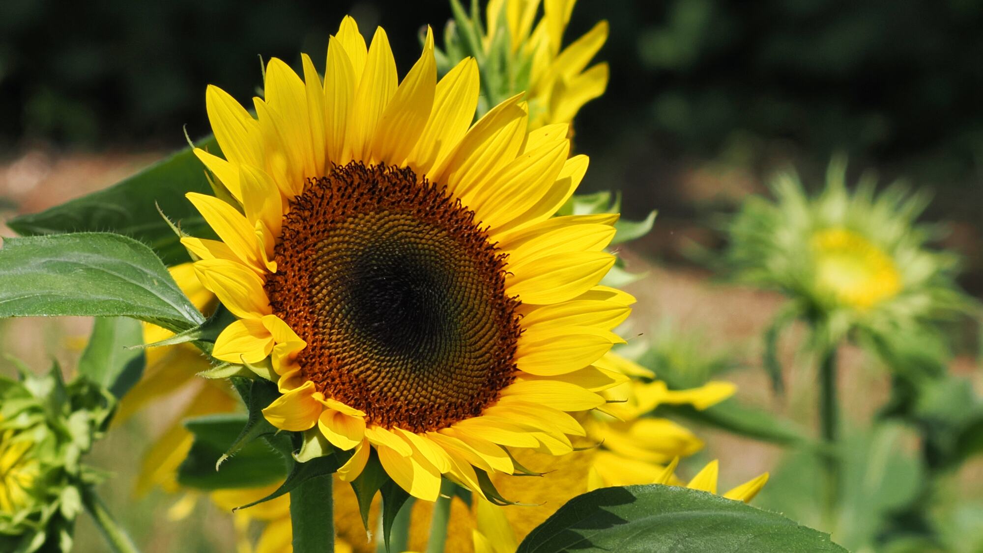 七国山のぼたん園から少し登ったところに毎年向日葵が植えられている。農家が善意で植えていると想像する。
