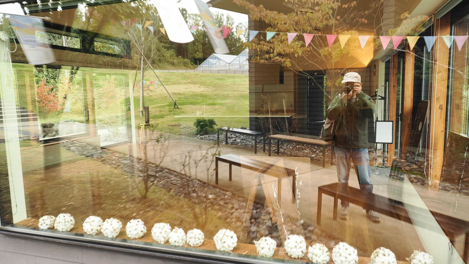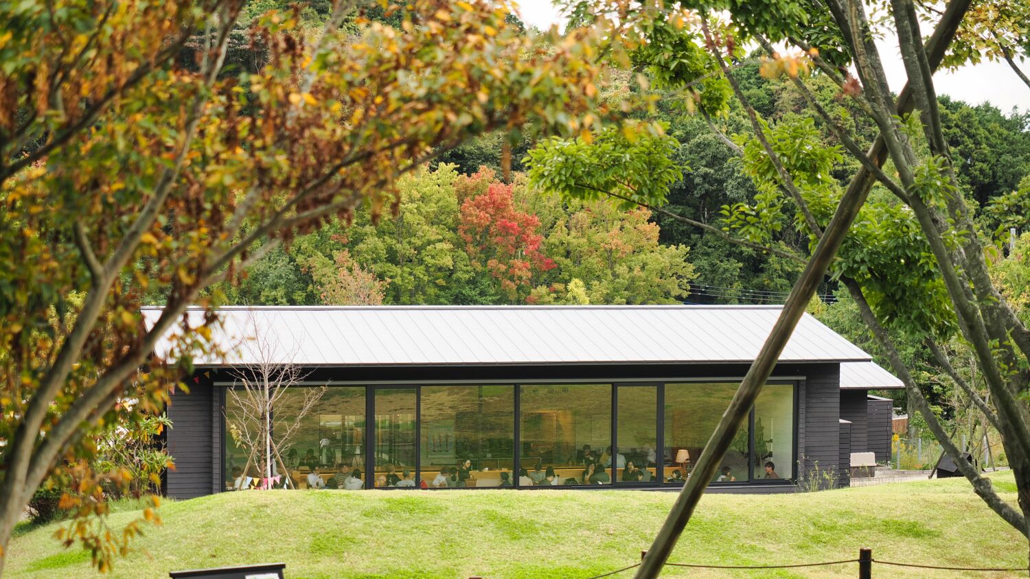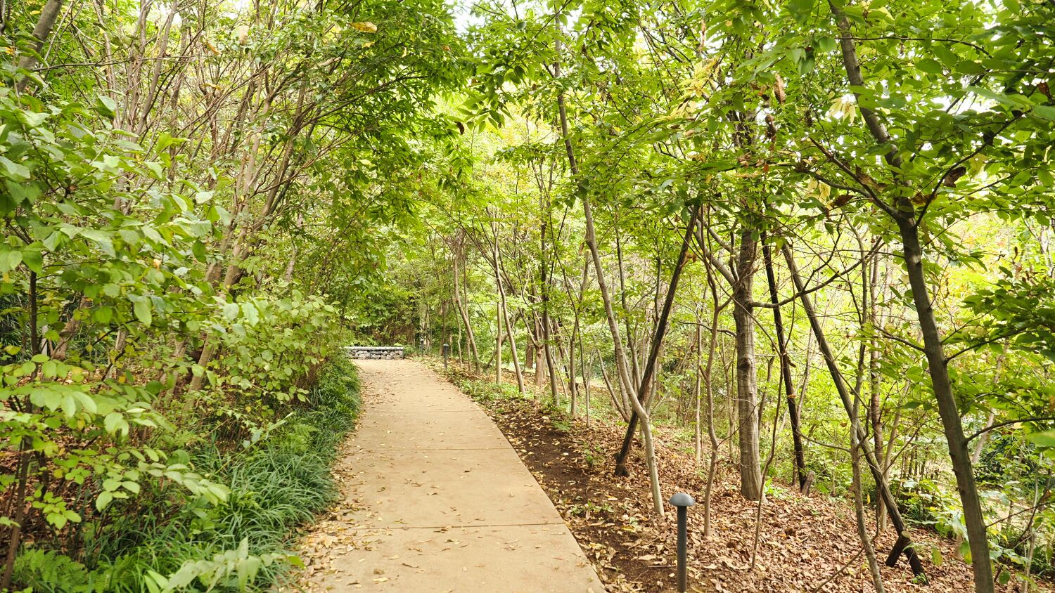 ウェルカムゲートの雑木林は秋模様。5年前に地元の植木会社が植えた広葉樹があたかも自然の雑木林のように育ち、紅葉し落葉し始めているようだ。 平日にもかかわらず思ったより多くの人がゆっくりと季節を楽しんでいる風であった。