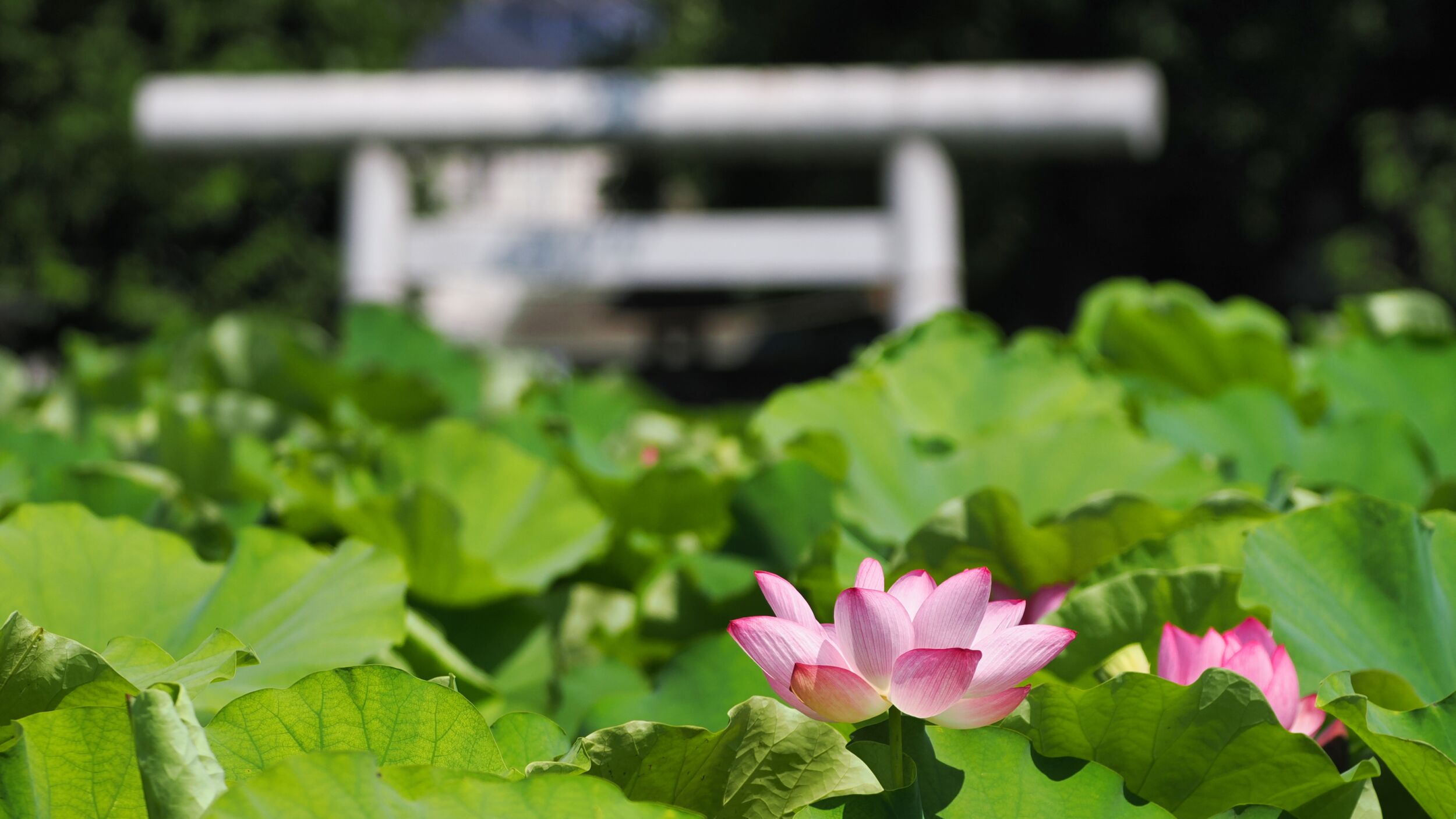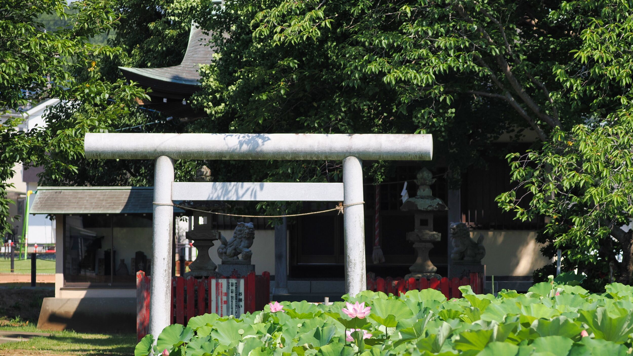 神社の参道右手の蓮田。完成平面図の点線部分