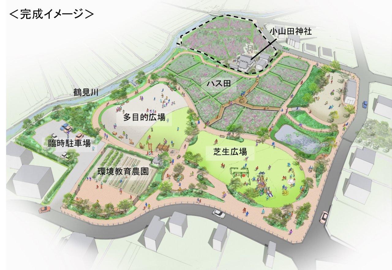 町田市下小山田町にある小山田神社周りのハス田は町田市が借りて大賀ハスを育てていたが、一作年町田市が買い取って「小山田蓮田緑地整備工事」と称して2023年9月から2025年2月末まで整備すると町田市公式サイトで告示されていた。最近の情報では開園は2025年7月26日(土)工事完成は2026年3月となっている。