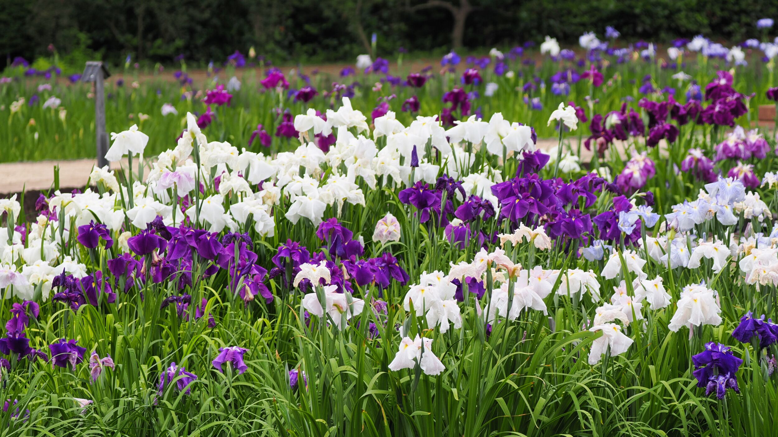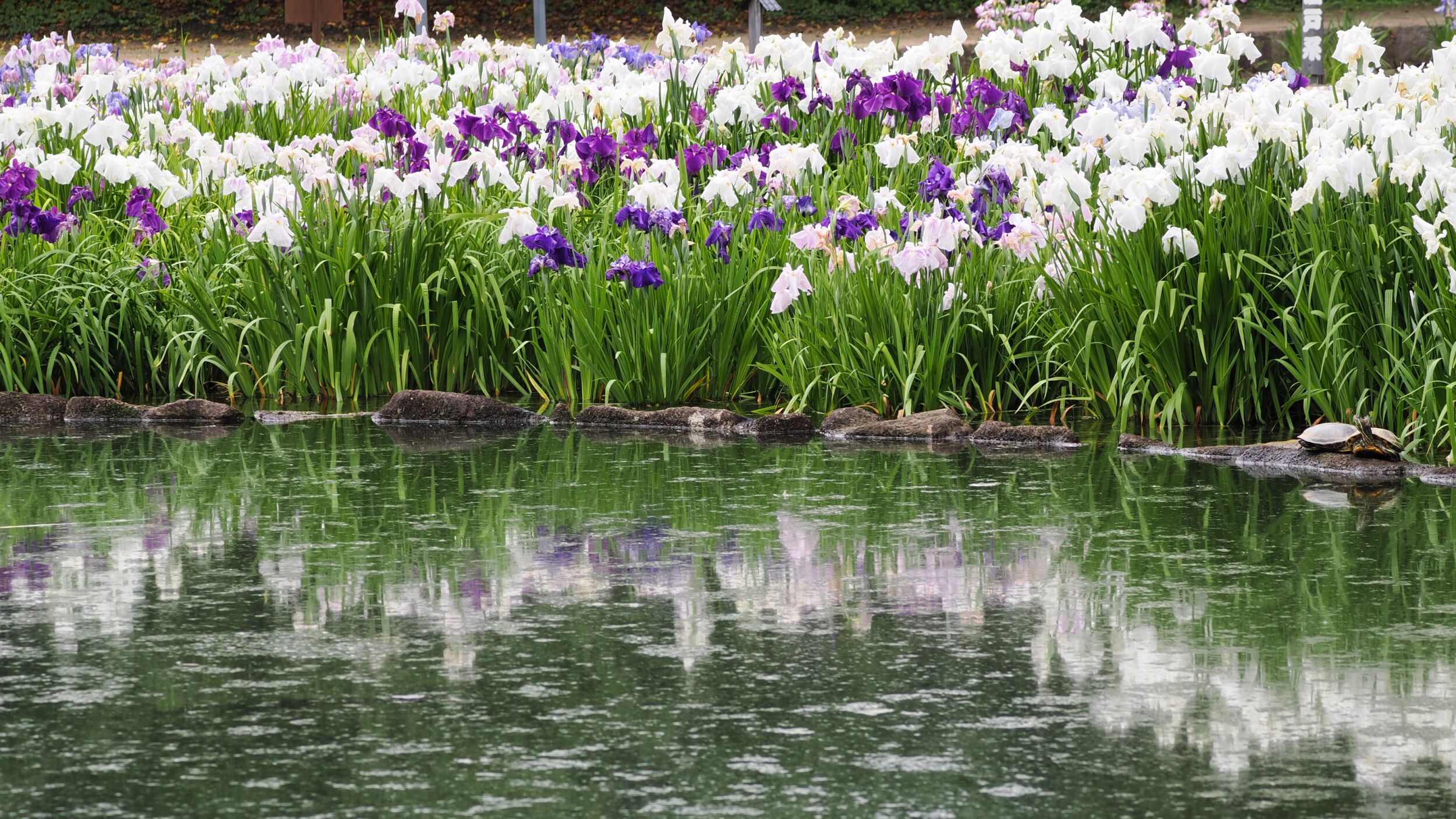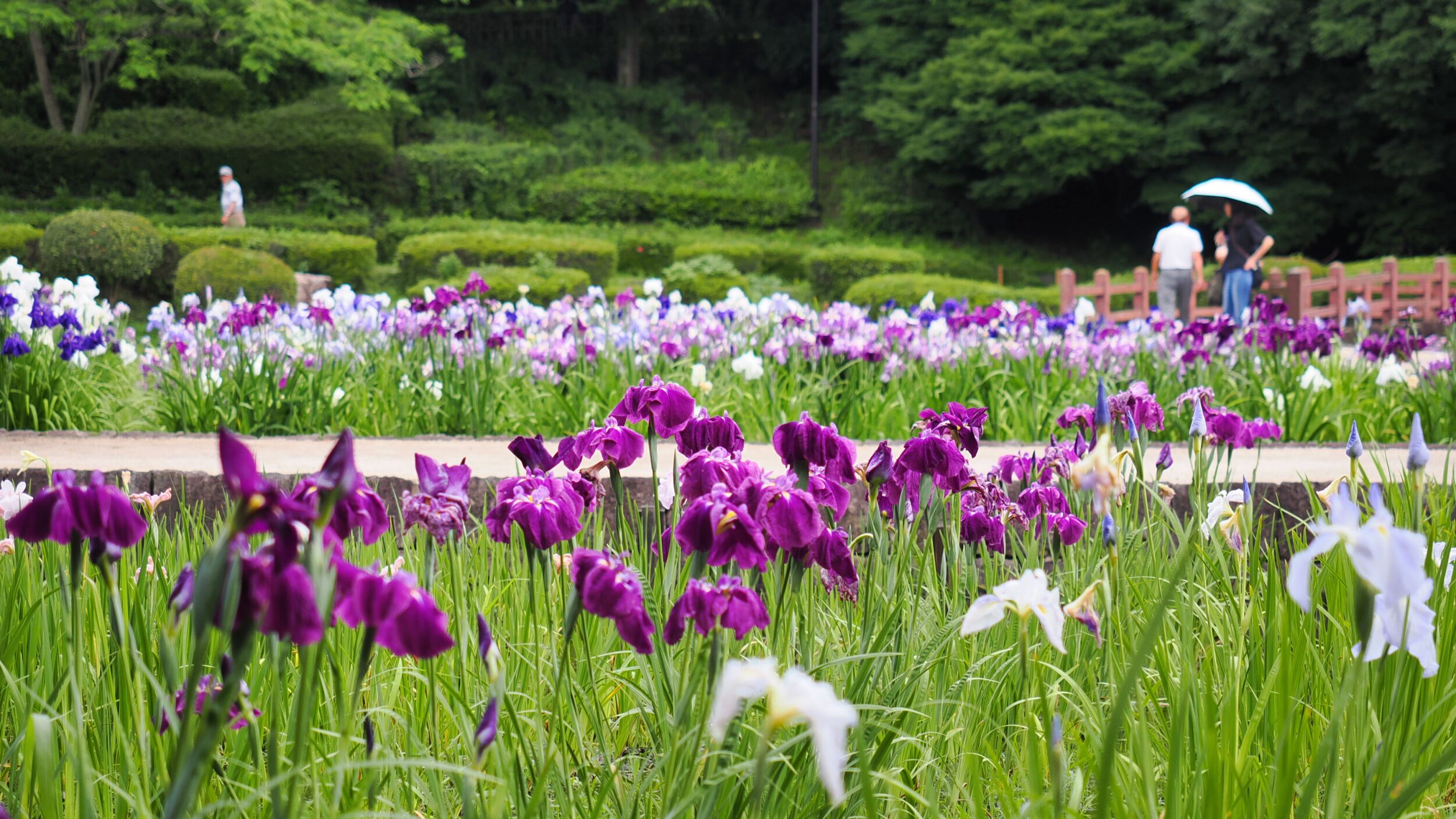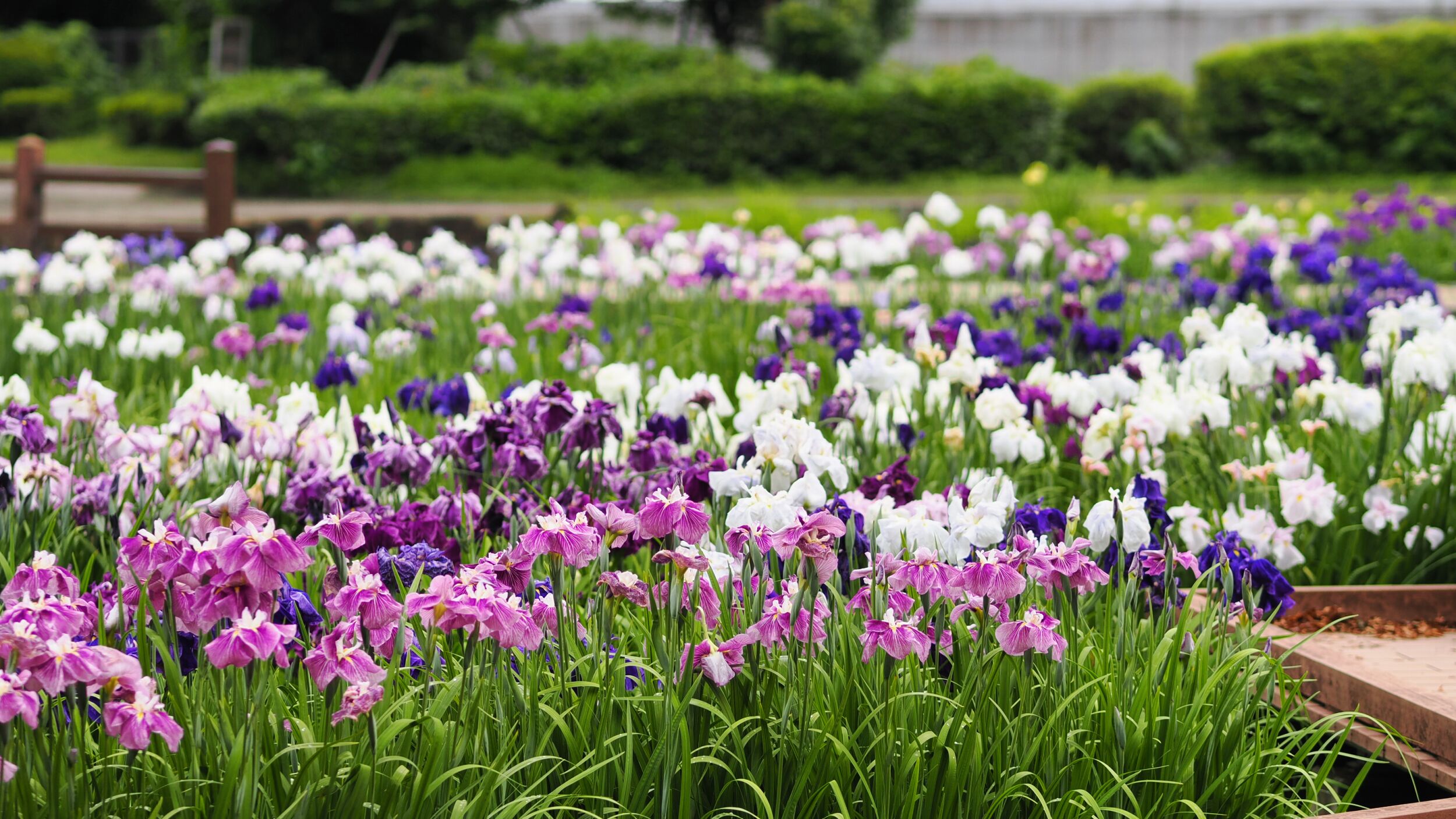 神奈川県相模原市南区下溝3277番地にある神奈川県立相模原公園。「水無月園」と名付けられた2,300㎡のハナショウブ園に5月下旬から6月中旬まで120品種20,000株のハナショウブが咲き競う。
