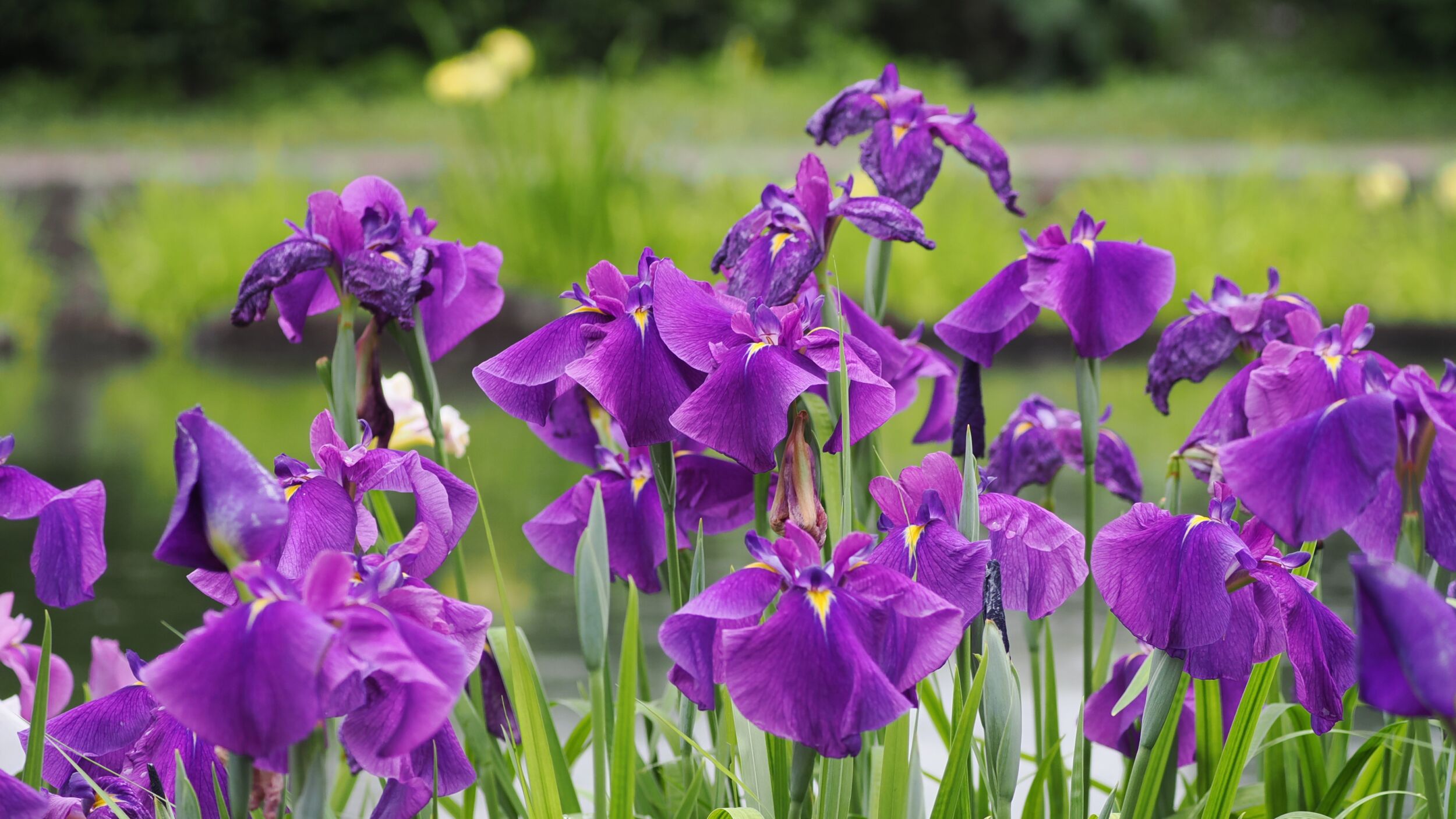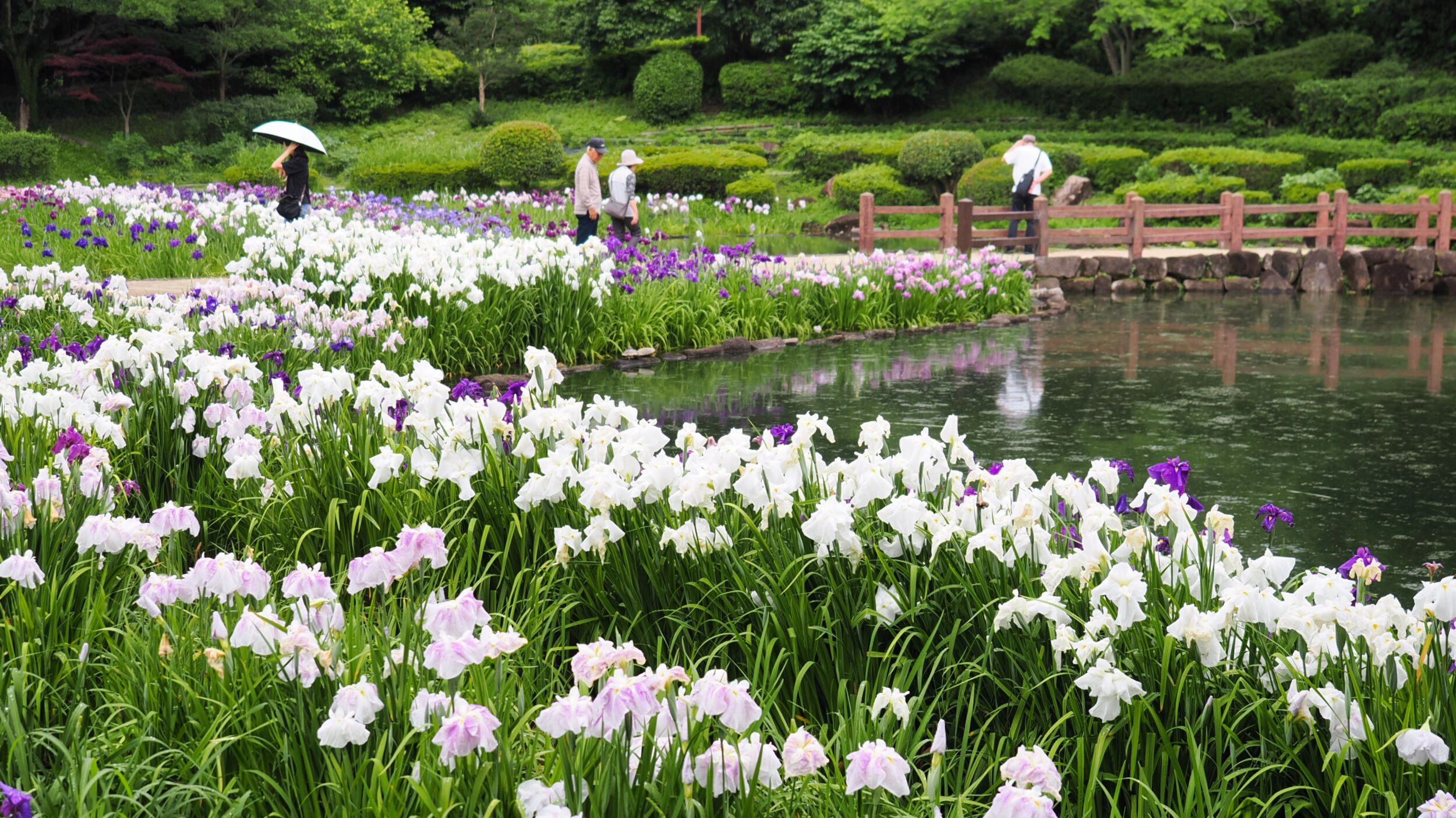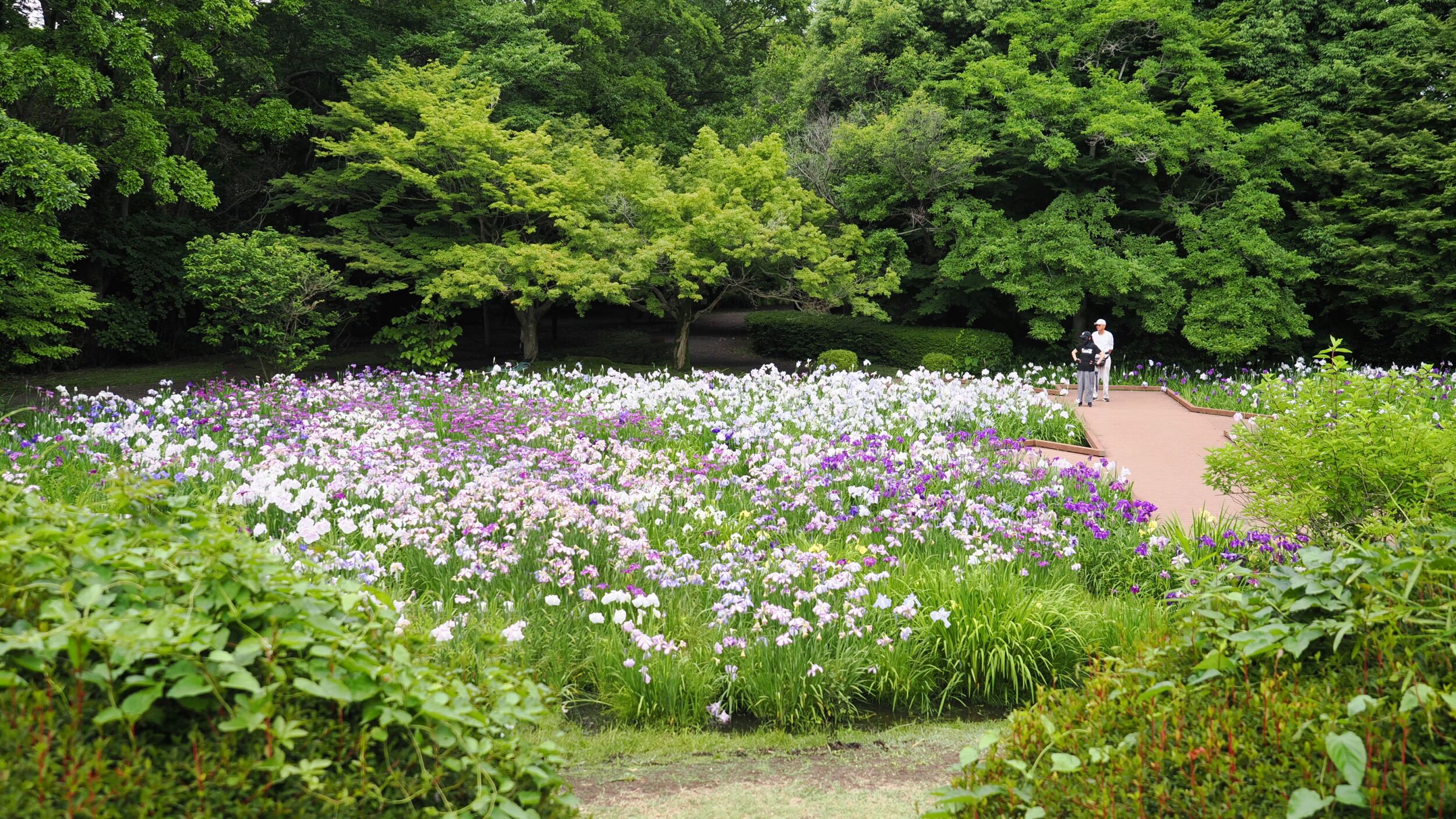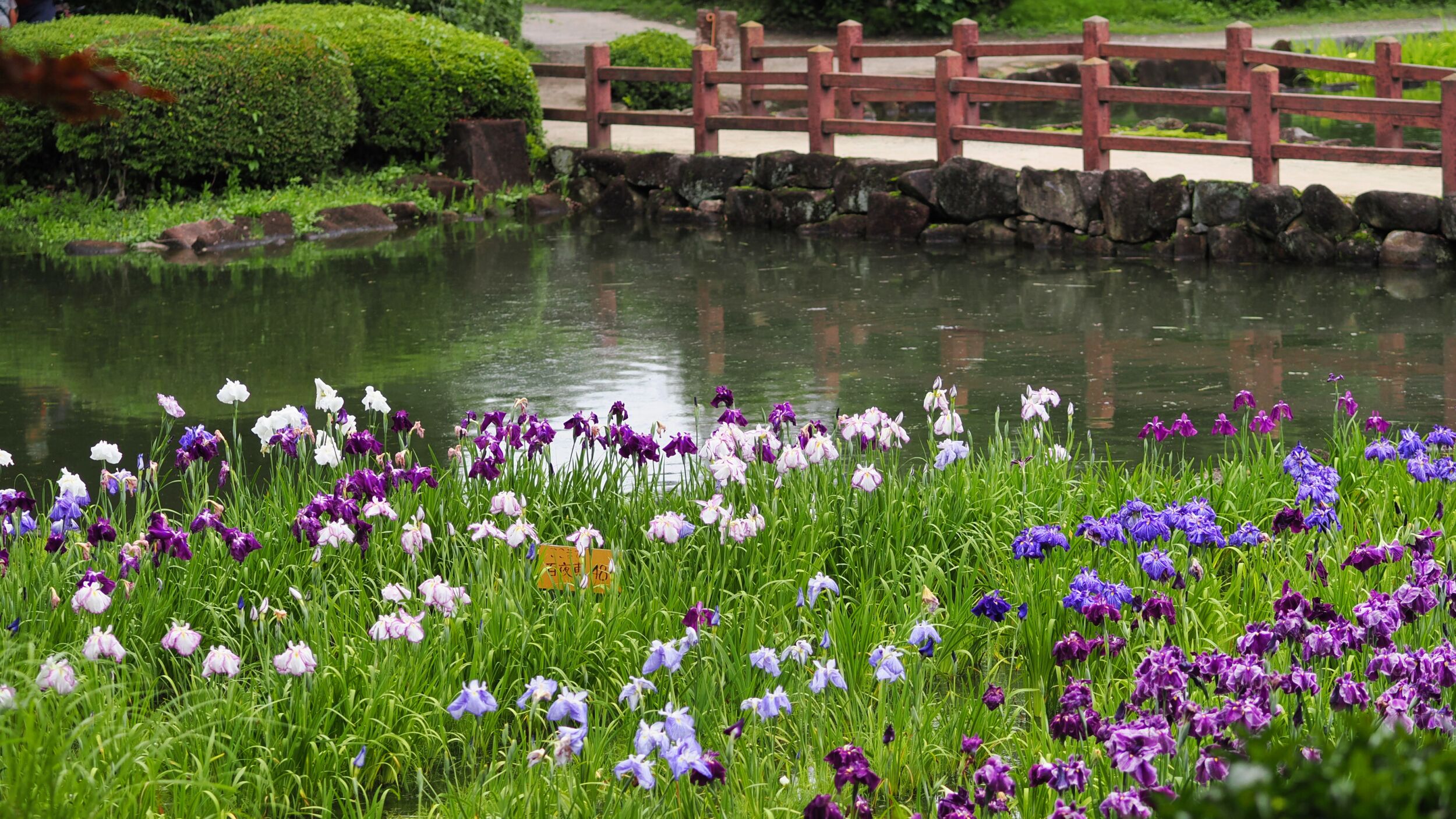 神奈川県相模原市南区下溝3277番地にある神奈川県立相模原公園。「水無月園」と名付けられた2,300㎡のハナショウブ園に5月下旬から6月中旬まで120品種20,000株のハナショウブが咲き競う。