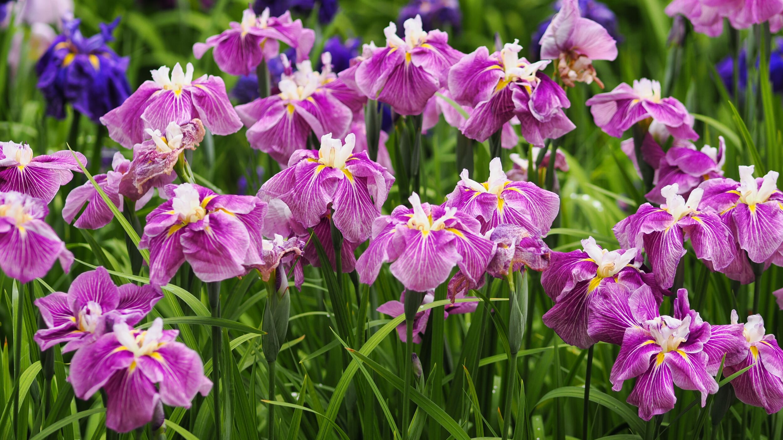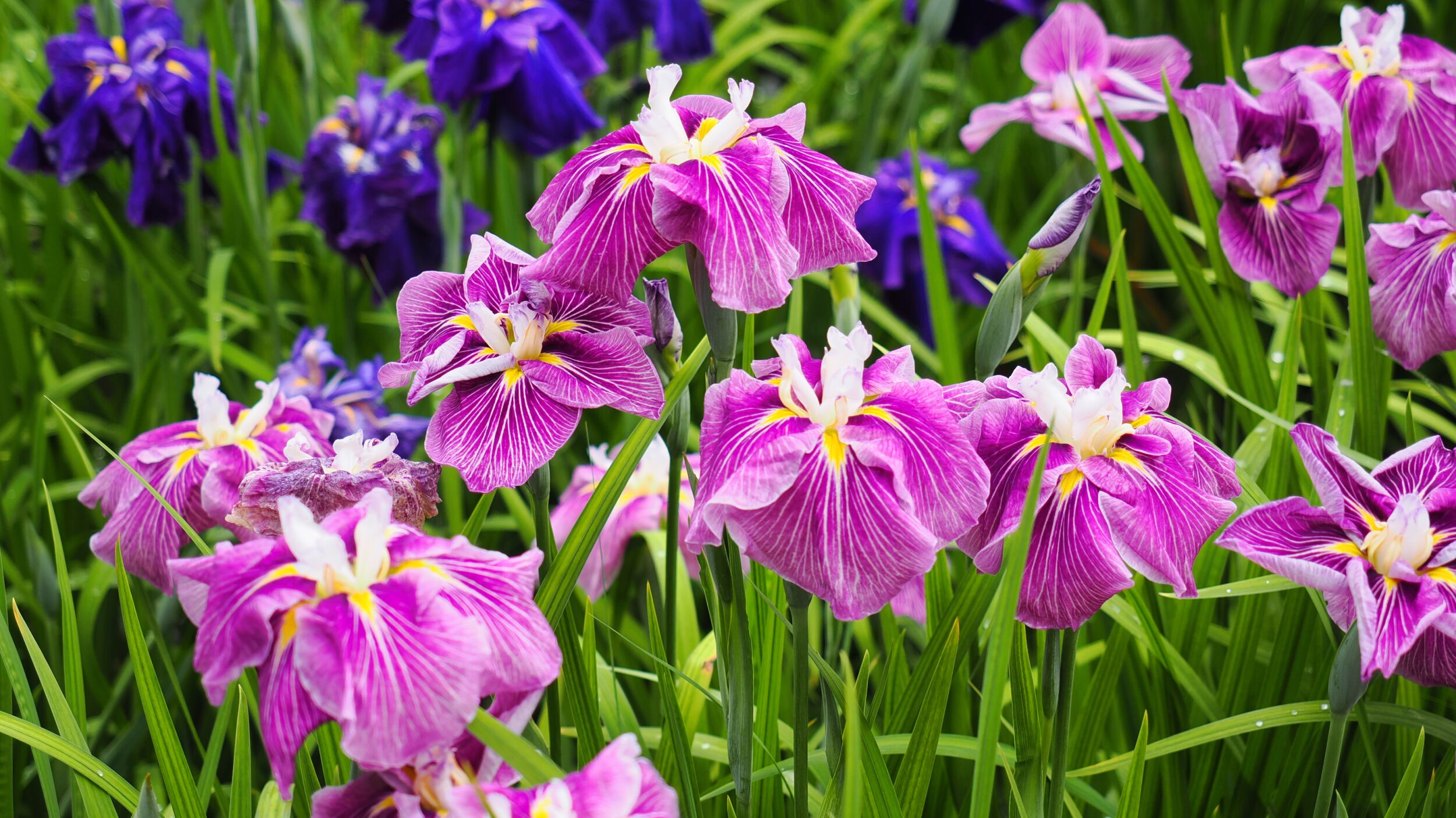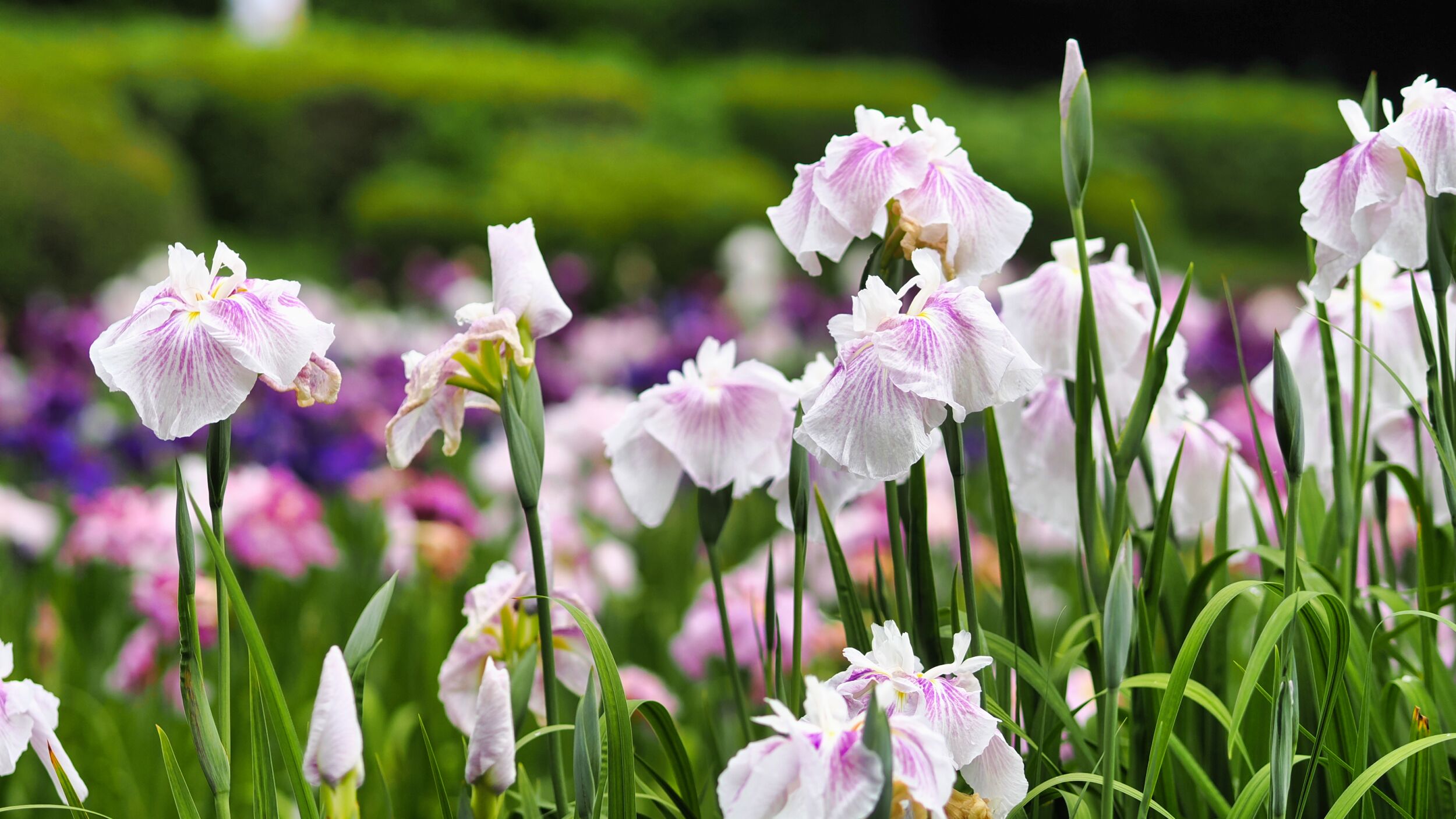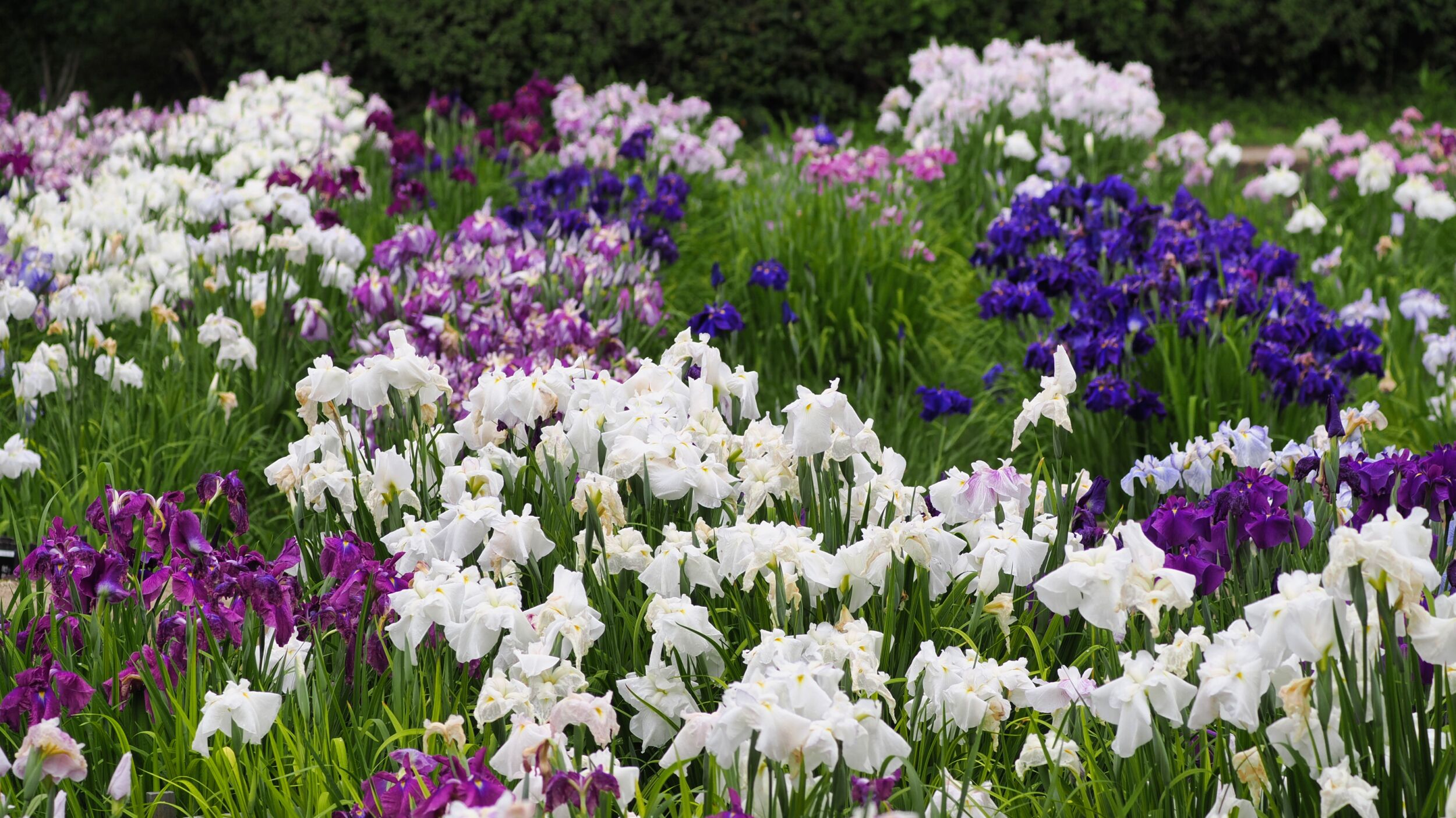 神奈川県相模原市南区下溝3277番地にある神奈川県立相模原公園。「水無月園」と名付けられた2,300㎡のハナショウブ園に5月下旬から6月中旬まで120品種20,000株のハナショウブが咲き競う。