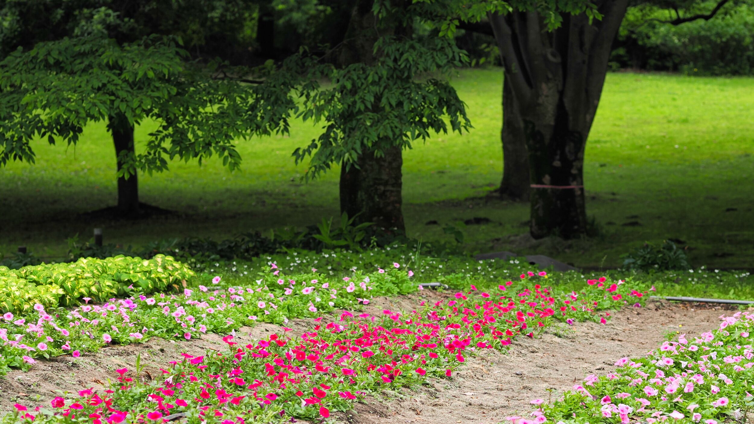 ハナショウブ以外にも「みんなの花壇」と名付けられた花壇にはユリやペチュニア、ベゴニアなどよく手入れされていて大変はなやかだった。