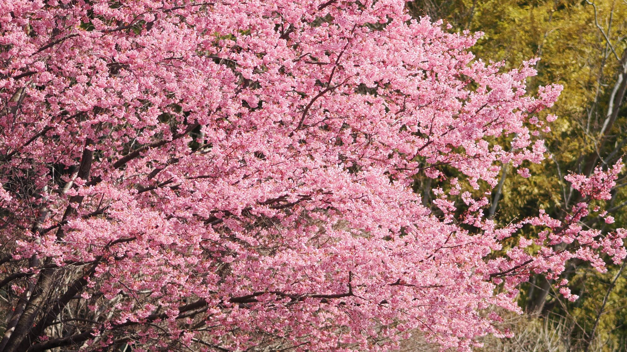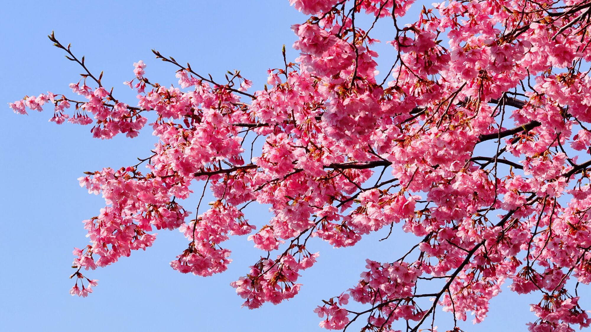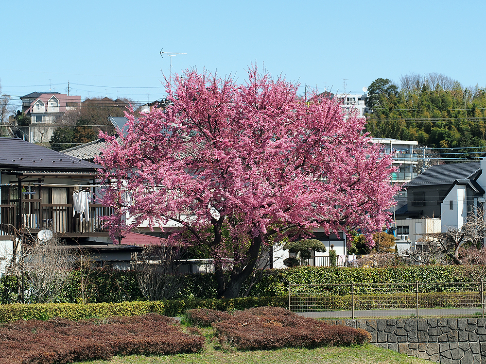 近所の桜の鮮やかさにつられて写真を撮ってきた。河津桜か陽光桜か熱海寒桜かは不明だが、薬師池公園の河津桜はすでに散っているので陽光桜のようだ。