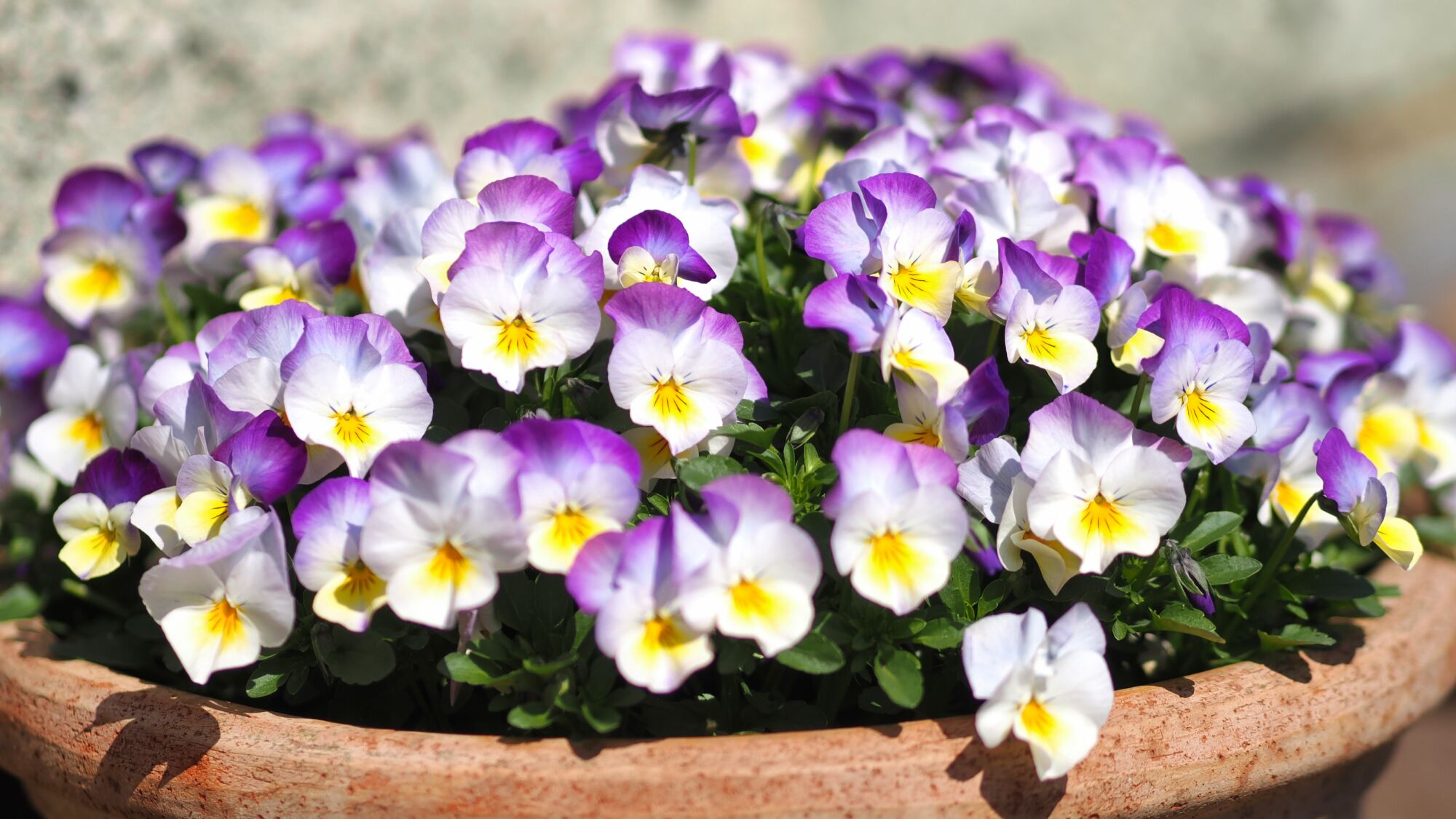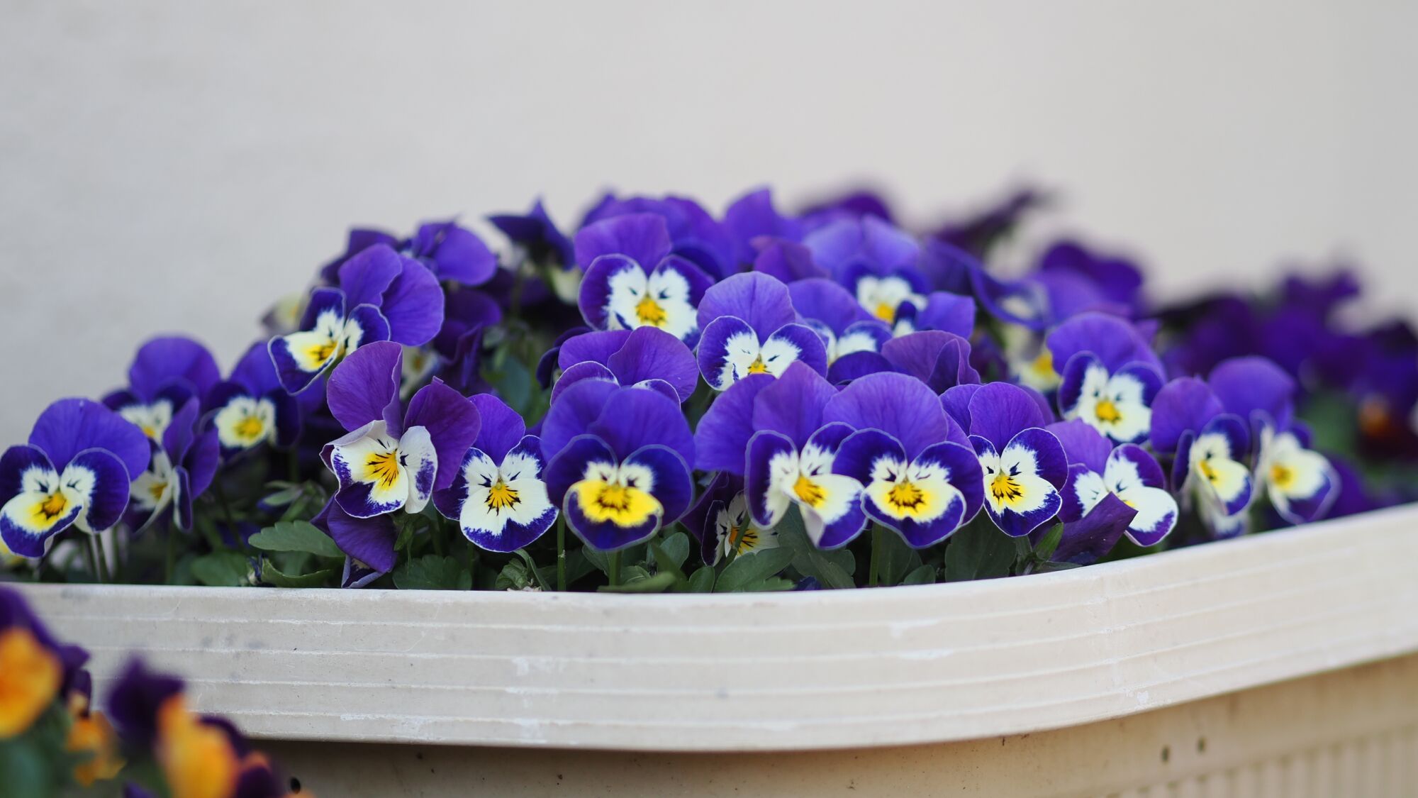我が家のビオラ。寒い冬も毎日咲き続けて春になって勢いが強くなった。